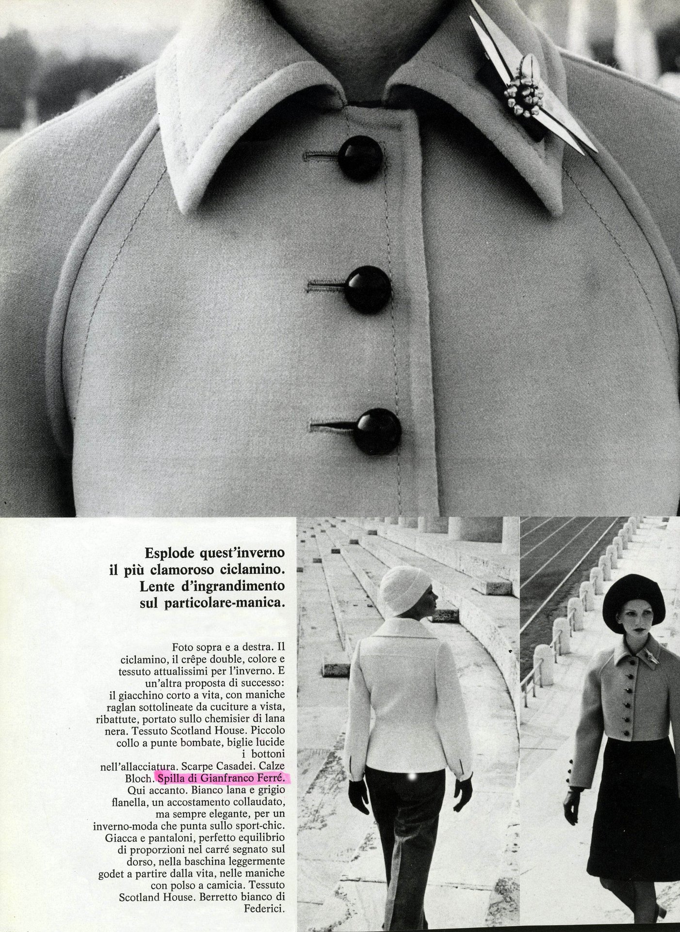 In prima fila le giornaliste che conoscevo solo di nome: Pucci Gabrielli, Anna Piaggi, Anna Riva, Adriana Mulassano, e anche i famosi mostri sacri d’Oltralpe, John Fairchild e Polly Mellen. Scrissero: ‘Una collezione a cinque stelle’ e io mi domandavo: ‘Ma che cosa vuol dire? T’immagini?’ Non mi rendevo conto. Pensa, eravamo io e Rita, due ragazze e uno spogliatoio che era un’infelicità. La collezione, però, bella: i miei motivi c’erano tutti e li rifarei in pieno. Emozione? La gioia più grande la provai quando American Vogue pubblicò un modello mio e uno di Armani con la scritta ‘due pezzi made in Italy che non dimenticherete’ ”.