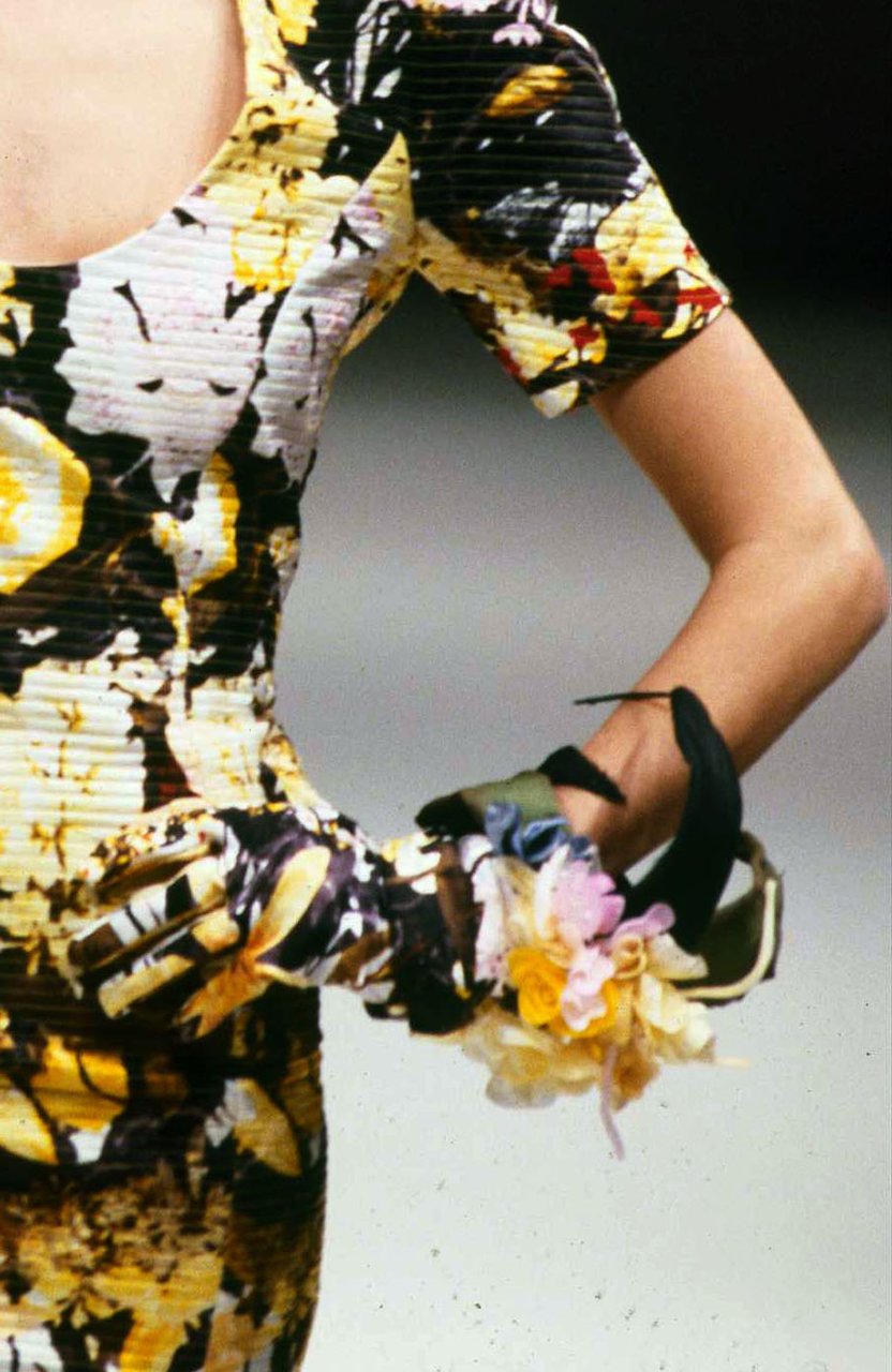 Per affinità segrete e contrasti apparenti, gli opposti si toccano: stampato su organza con una tecnica che dà i riflessi della madreperla, lo scialle Paisley... rose sparse a effetti tridimensionali si mutano in petali e tornano in fiore sull'abito da sera... colori di polvere e rose essiccate... leggerezze impalpabili: le gonne da ballo di tulle a cento strati con sfrangiature infinitesimali.