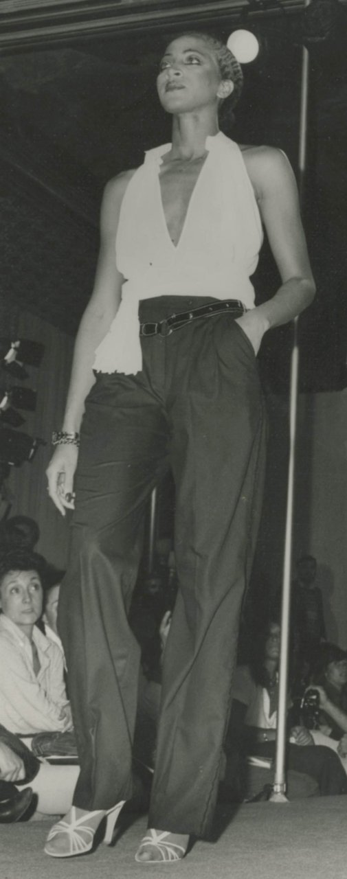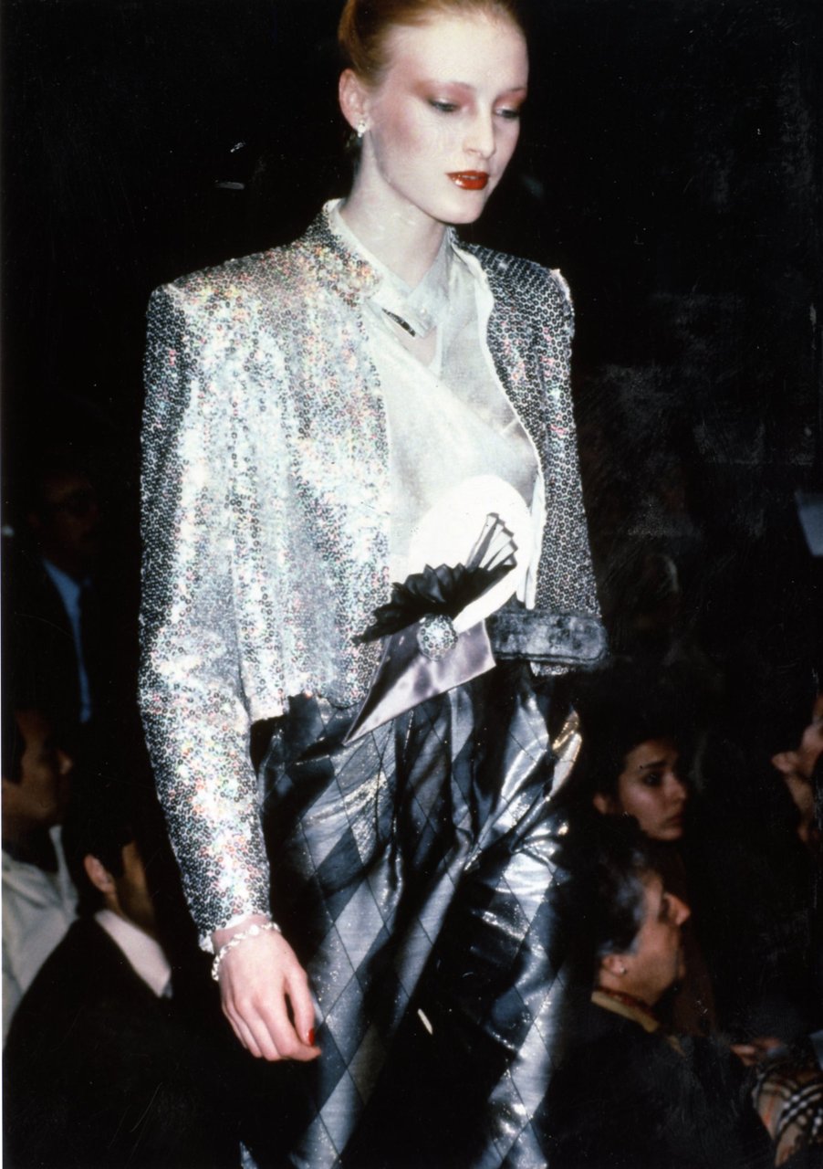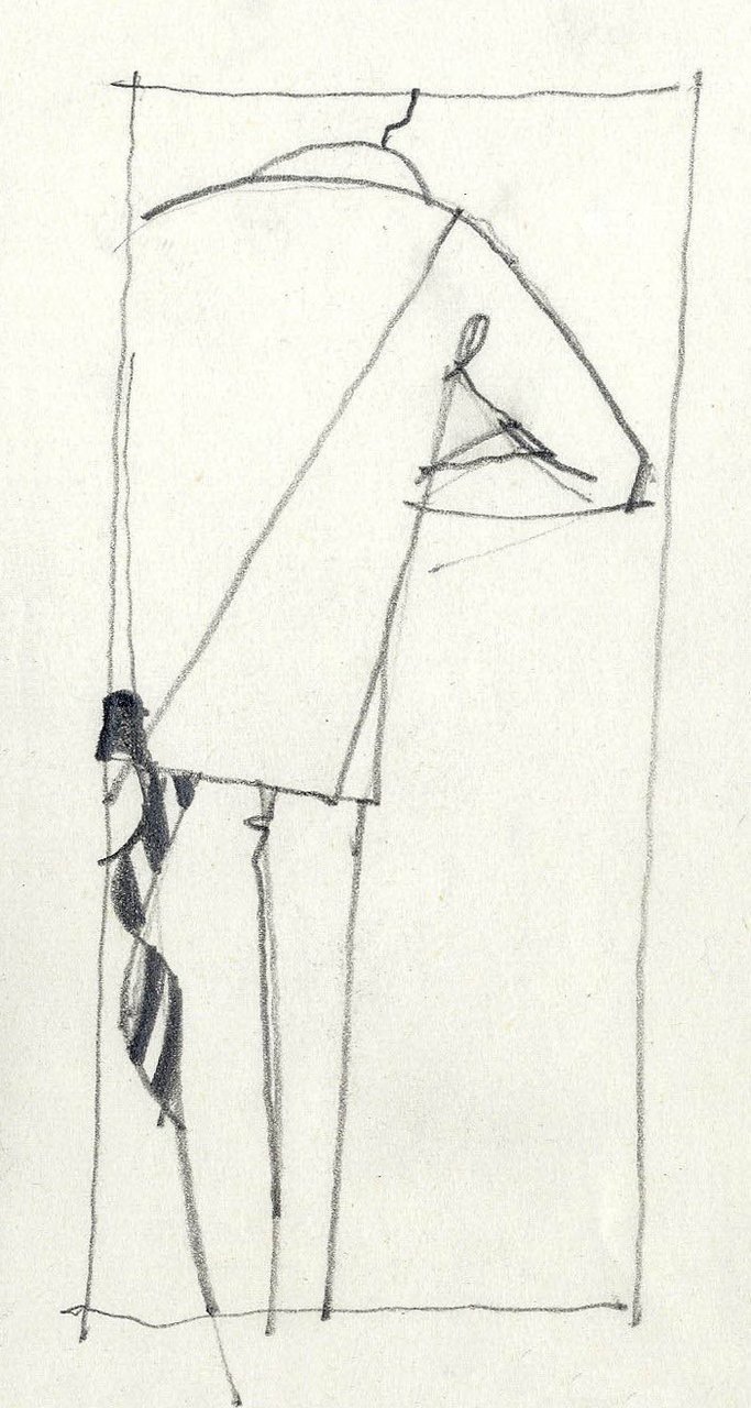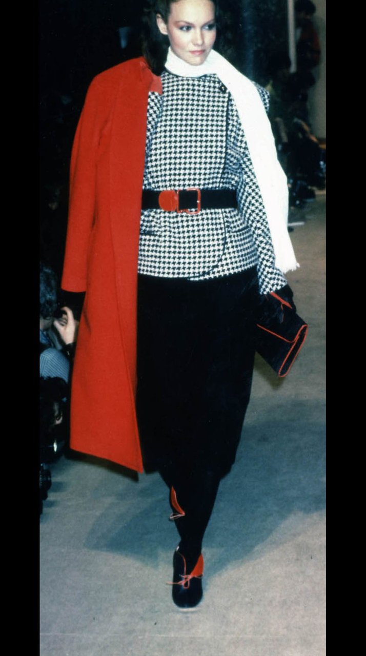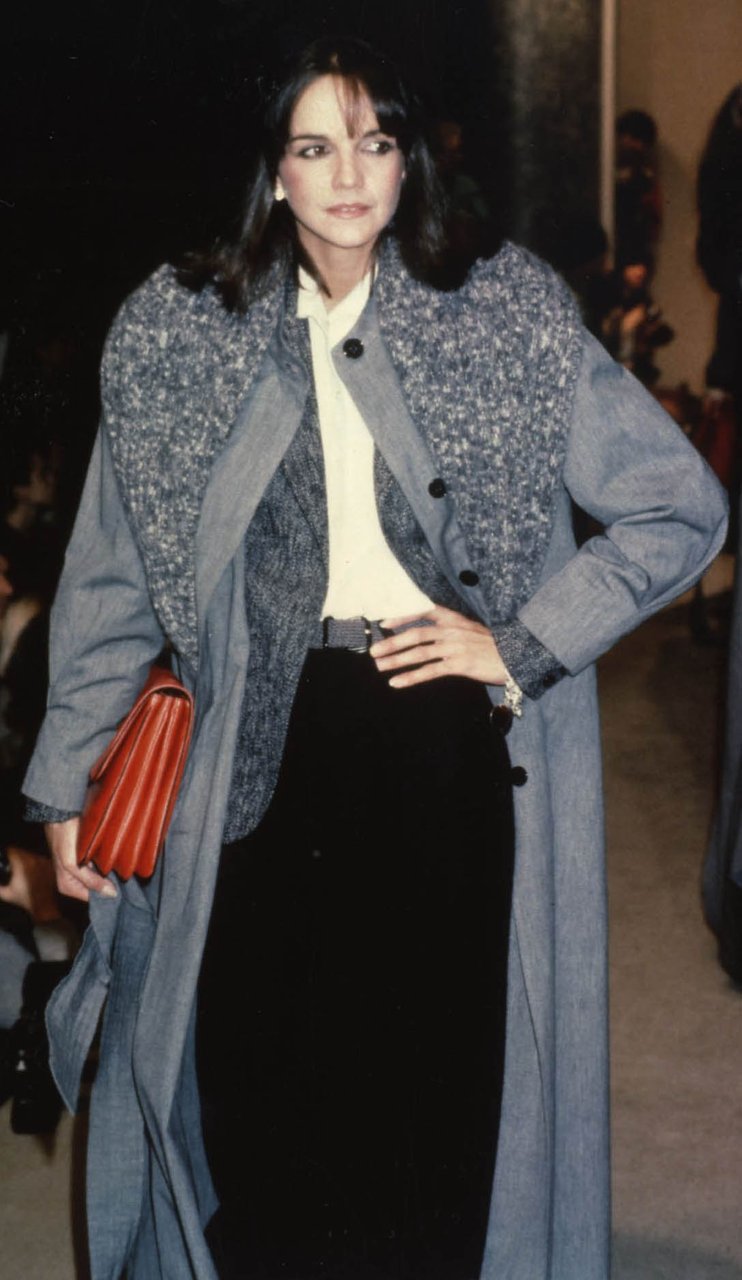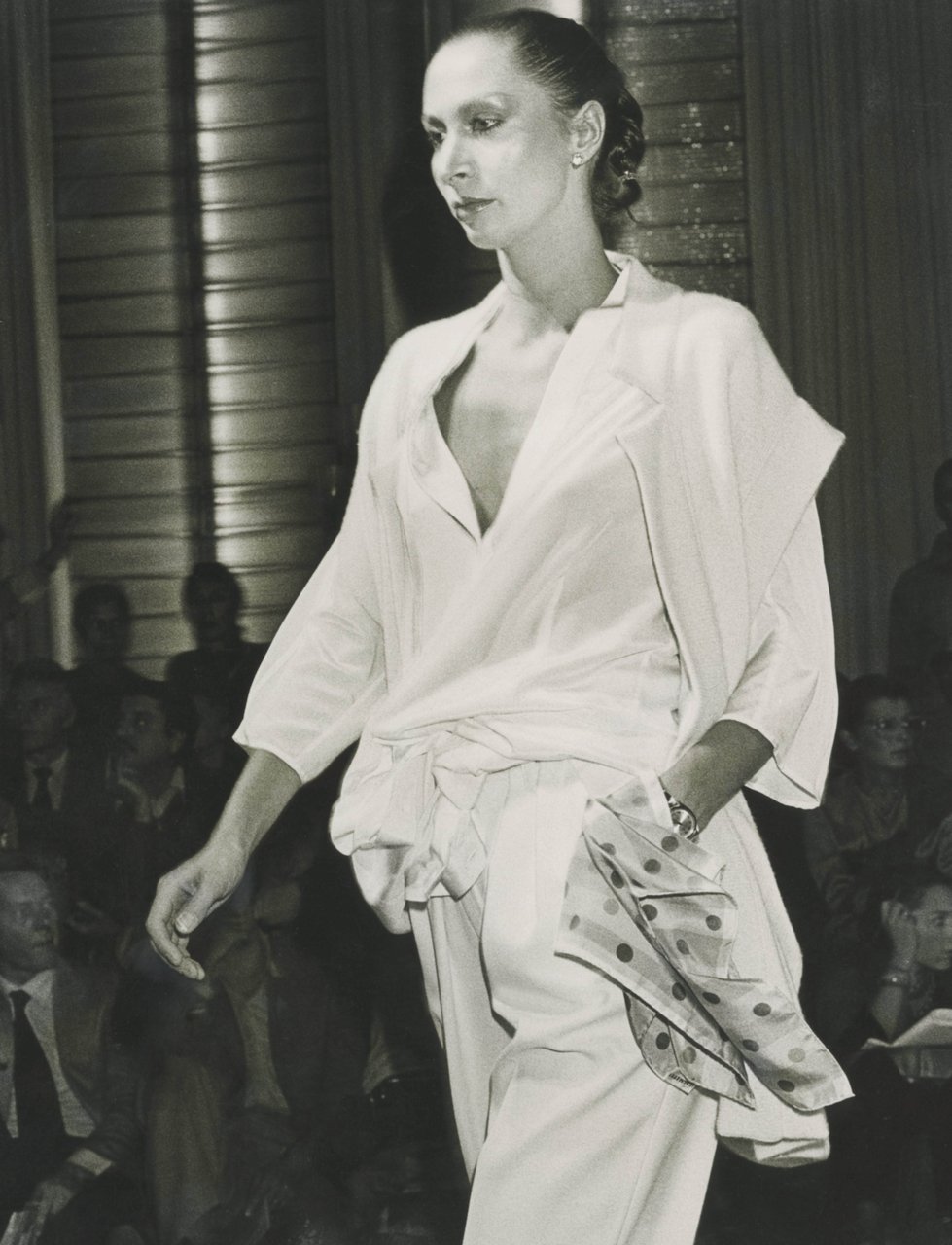 Le linee: la figura è lineare, allungata; le spalle sono importanti e costruite; le maniche, di diversa dimensione in base alla funzione del capo, sempre molto morbide; i colli sono minimi, spesso inesistenti; sciolto e assai duttile il punto-vita. Effetti di morbidezza, sempre portata sul davanti: pinces esterne con impunture triangolari che formano pieghe morenti, tagli in vita più alti dietro e sottolineati sul davanti da arricciature, o tecniche di lavorazione del tricot che permettono di aumentare o gonfiare i volumi, soluzioni di rimborsi centrali favoriti dalla duttilità della suede e del daino.