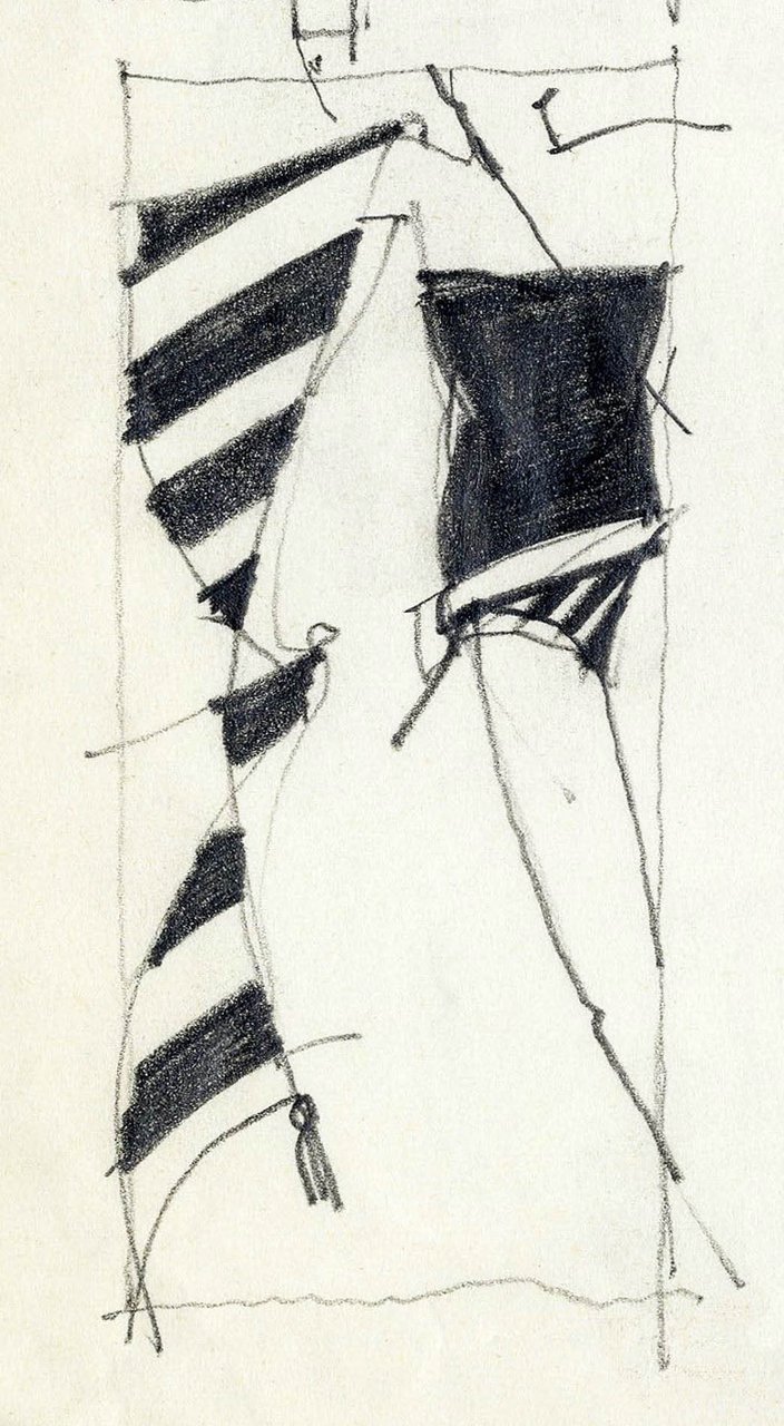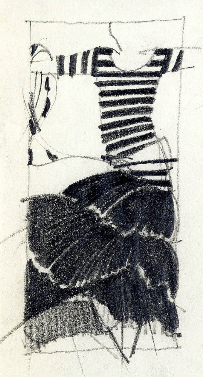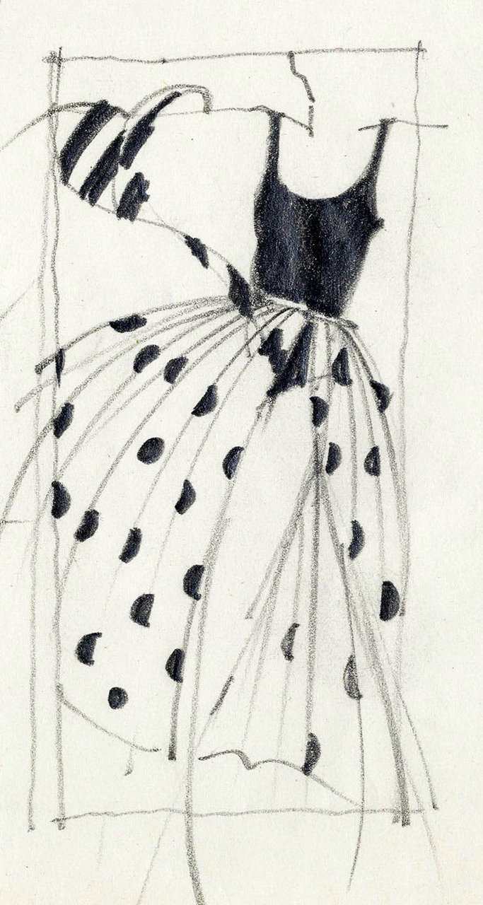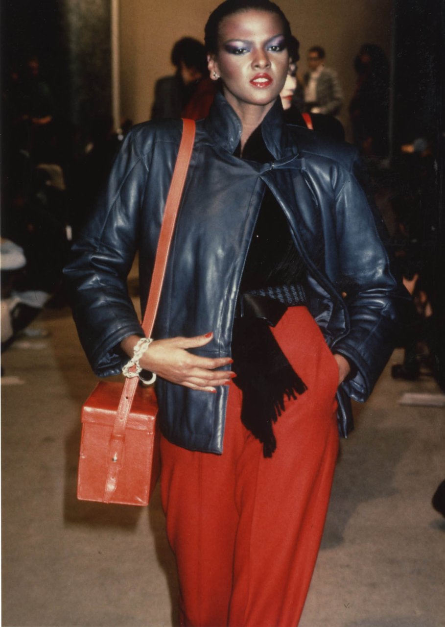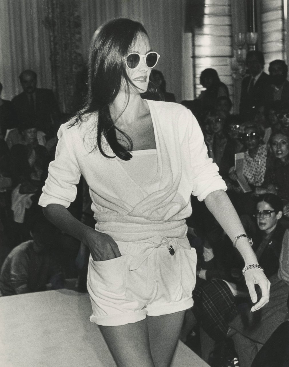 Le linee: la figura è lineare, allungata; le spalle sono importanti e costruite; le maniche, di diversa dimensione in base alla funzione del capo, sempre molto morbide; i colli sono minimi, spesso inesistenti; sciolto e assai duttile il punto-vita. Effetti di morbidezza, sempre portata sul davanti: pinces esterne con impunture triangolari che formano pieghe morenti, tagli in vita più alti dietro e sottolineati sul davanti da arricciature, o tecniche di lavorazione del tricot che permettono di aumentare o gonfiare i volumi, soluzioni di rimborsi centrali favoriti dalla duttilità della suede e del daino.