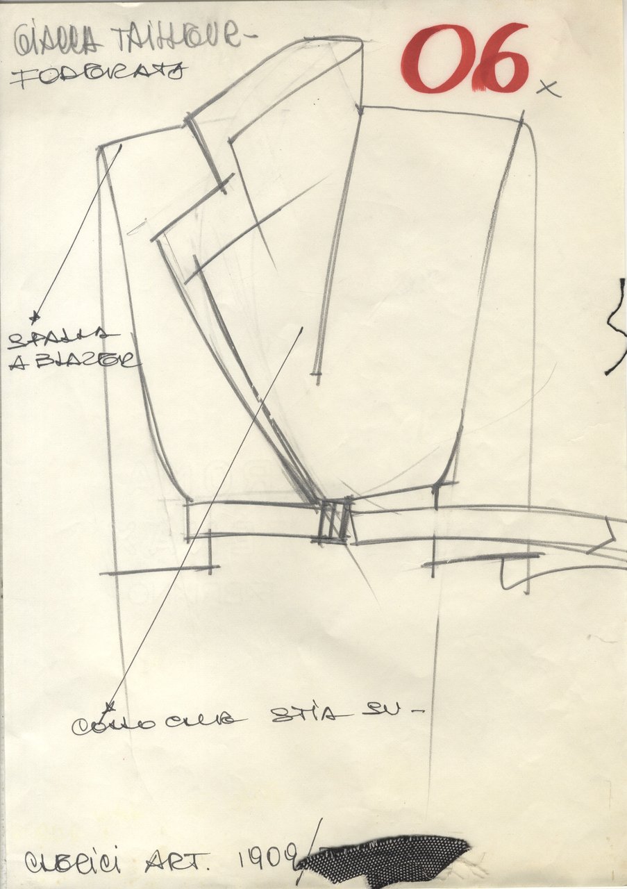 Discorrendo di elementi già noti del vestire: impadronirsi del colletto di una camicia maschile, ingigantirlo e farlo diventare una blusa sbracciata. Oppure sostituirla con il gilet, corto o lungo, e precisarlo con una giacca sfuggente sul dorso, esasperata dal colletto a risvolti giganti. Addolcire il giubbotto barracuda con la popeline di seta naturale.