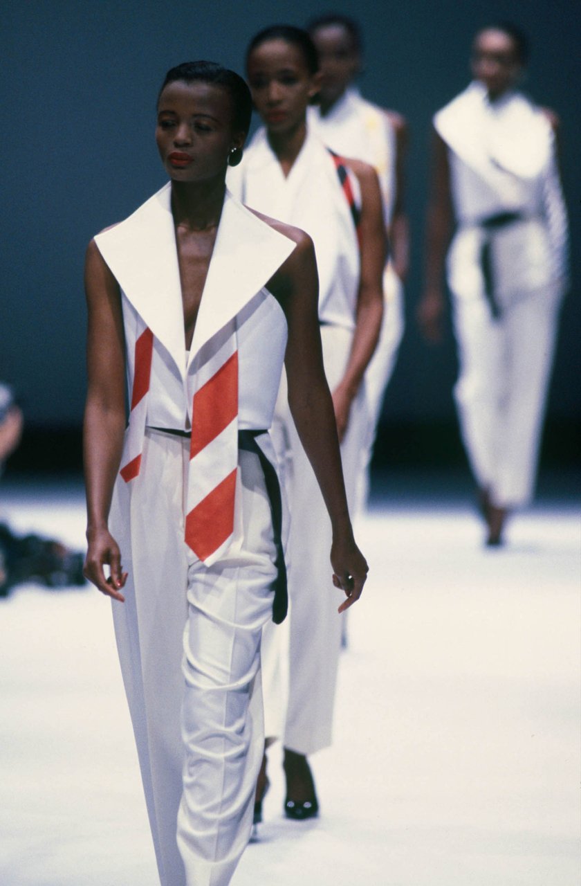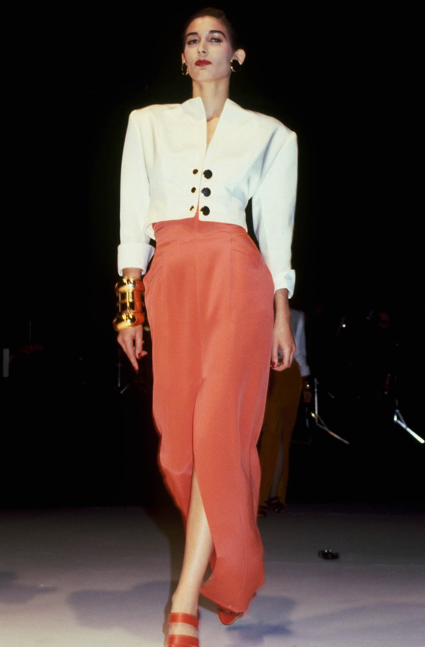 “Sfidare con spirito nuovo... il che significa servirsi della semplicità per farne uno strumento sottile di decoro, non aver soggezione di certe forme canoniche e rinnovarsi oppure trasformare in vivacità tutto ciò che per sua natura è formale, contrapponendo maliziosamente il femminile al maschile. È il segreto di una collezione libera, costruita lavorando su ciò che più mi piace e che vedo come l'inizio, lo sbocco di una strada futura. Dove sempre più forte è il desiderio, tipico del prêt-à-porter, di colpire, sedurre, accattivare, ma esprimendosi con un linguaggio che in fondo non gli è tipico e che deriva dall'alta moda: l'educazione alle proporzioni”.