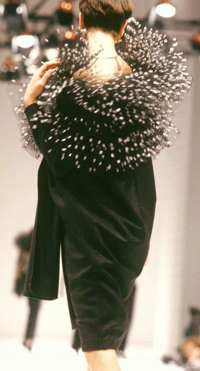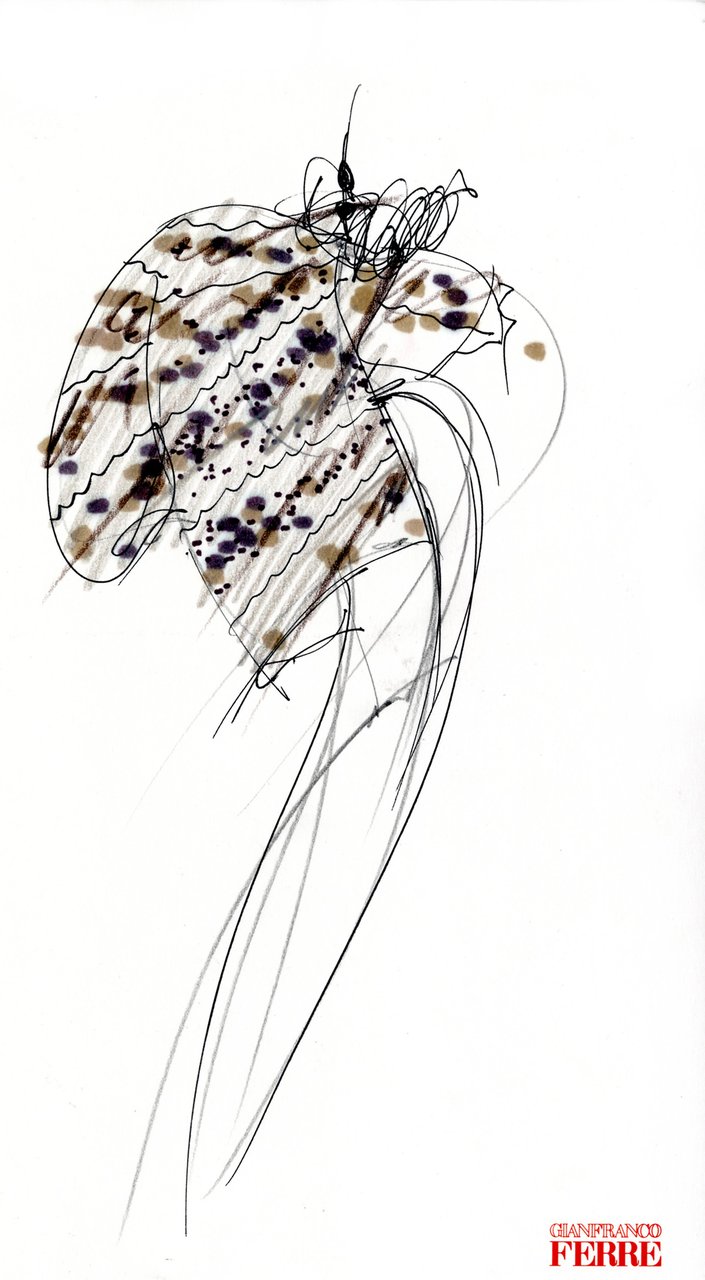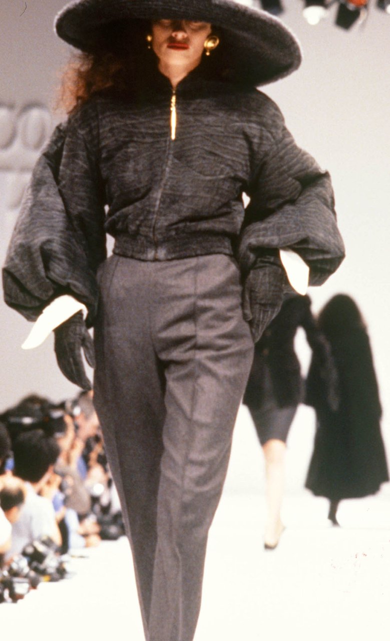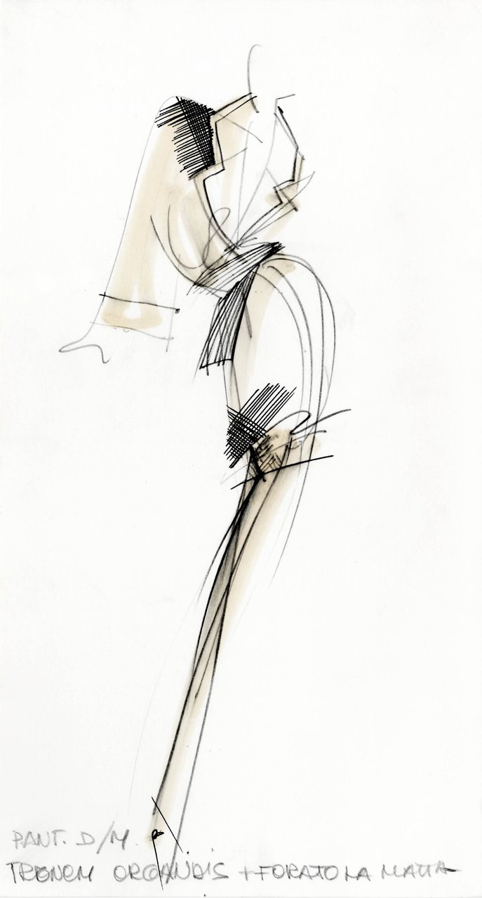 “Ho cominciato a disegnare questa collezione spinto da un desiderio impreciso e fortissimo: la leggerezza, il turbinare soffice della maglia e della pelliccia, la forza silenziosa di certi colori... il beige, il nero, il bianco, il grigio, il rosso. Una gamma di tonalità classiche che mi rimandava a materie impreviste. Compatte, ma con effetti di rilievo, disegnate ma non stampate, morbide ma non cascanti... materie che si esprimono attraverso i volumi. Giochi di assimilazione, con rimandi ottici precisi. Mi piaceva sottolineare una predisposizione istintiva all’eccentricità, ma sbarazzandola da ogni enfasi con un atteggiamento sportivo”.