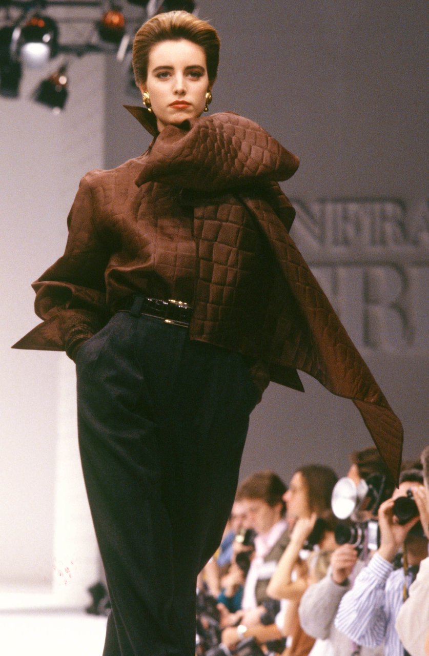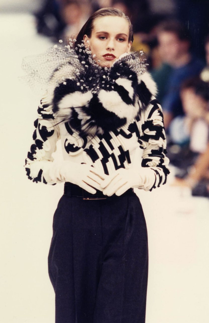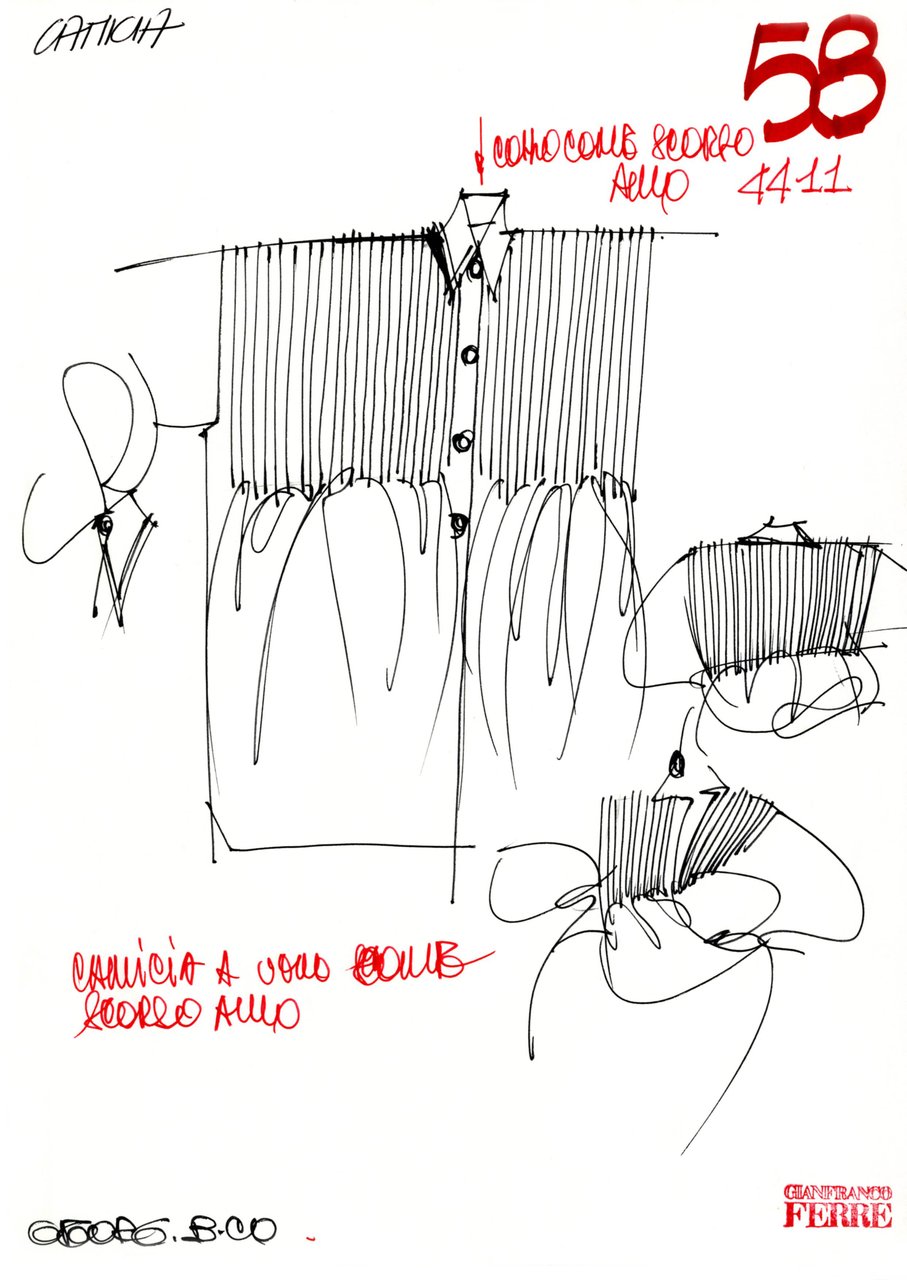 “Ho cominciato a disegnare questa collezione spinto da un desiderio impreciso e fortissimo: la leggerezza, il turbinare soffice della maglia e della pelliccia, la forza silenziosa di certi colori... il beige, il nero, il bianco, il grigio, il rosso. Una gamma di tonalità classiche che mi rimandava a materie impreviste. Compatte, ma con effetti di rilievo, disegnate ma non stampate, morbide ma non cascanti... materie che si esprimono attraverso i volumi. Giochi di assimilazione, con rimandi ottici precisi. Mi piaceva sottolineare una predisposizione istintiva all’eccentricità, ma sbarazzandola da ogni enfasi con un atteggiamento sportivo”.