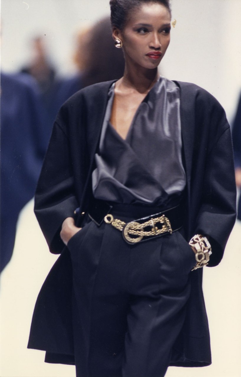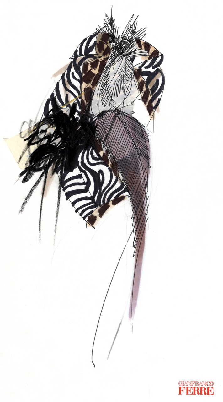 Sui percorsi dell’illusione e dei parallelismi segreti, il bianco e nero dilagano, naturalmente, nelle strisce della zebra. Il cammello pieno e denso ondeggia e si muove fino a trasformarsi in magico maculato dalle origini misteriose. Il grigio della flanella, naturalmente marezzata, sconfina nei saggi craquelé dell’elefante, tra infinite pieghe e minuscole rughe. Il marrone assume le trasparenze e la plasticità della pelle di struzzo grazie a tecniche nuove, velette, point d’esprit.