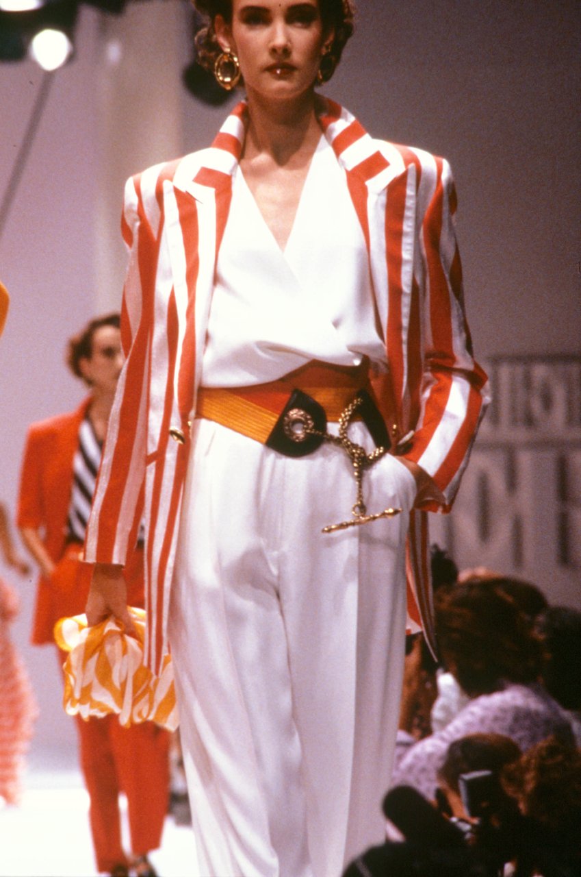 “Potrei descrivere questa collezione con una frase soltanto, una battuta a metà tra la fantasia e la memoria: ‘un marinaio d’indole romantica, che si è innamorato delle Hawaii’. Così il senso dell'uniforme, il lindore del bianco e del blu, la fragranza del piquet, l’asciuttezza della gabardina si contrappongono alle forme languide, femminili, che nascono dal gesto naturale dell’avvolgersi e dell’allacciarsi. E la libertà di atteggiarsi suggerisce la massima dolcezza dei comportamenti”.