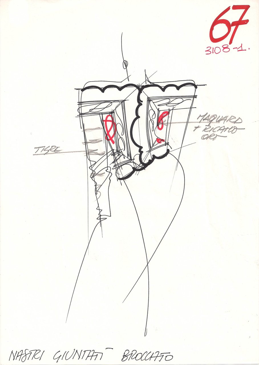 Le lavorazioni. Effetti di piquet ricamato sui davanti delle camicie. Il macramè di cordini cerati. Il taffetas cangiante lavorato a nido d’ape per le giacche a uomo. Decori, nastri, bandoliere di metallo.