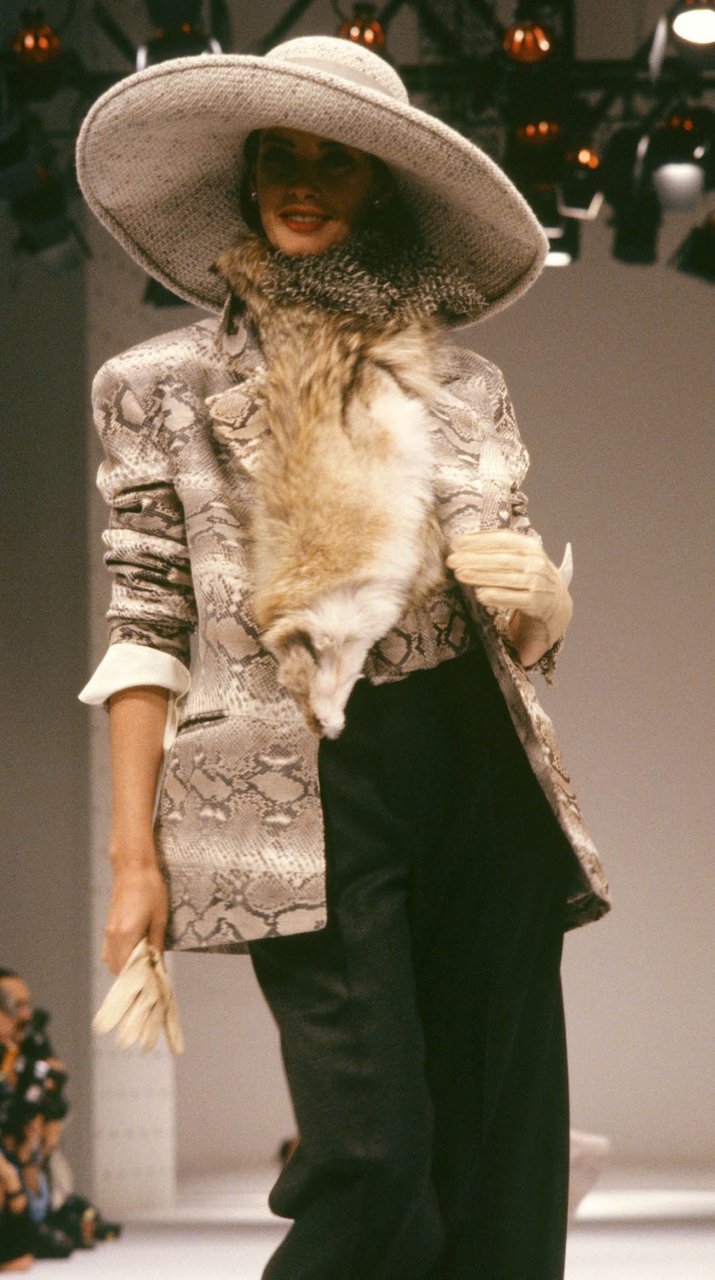 Sul filo dell’illusione, tra fantasia e memoria, il falso vero rimanda al vero finto. Mescolando al tweed, scaglia su scaglia, il pitone forma superfici indefinite. Tagliato a strisce e applicato sulla maglia, il coccodrillo svela una natura duttile e arrendevole. Da reinventare anche con il velluto trapuntato e il gazaar stampato a caldo. Intarsiata, la zebra fodera la giacca sciolta come una robe de chambre. O movimenta il trench stampato di cavallino.