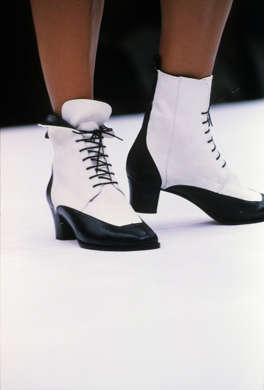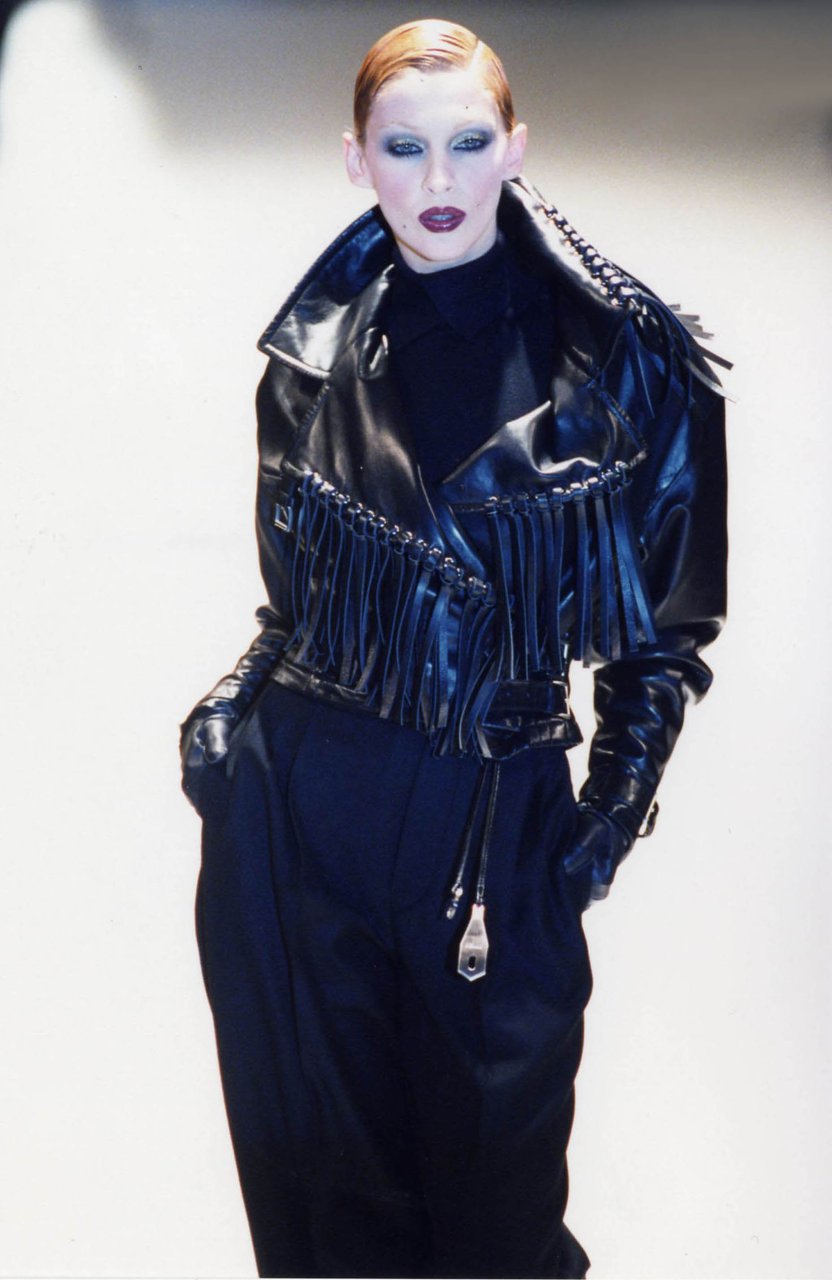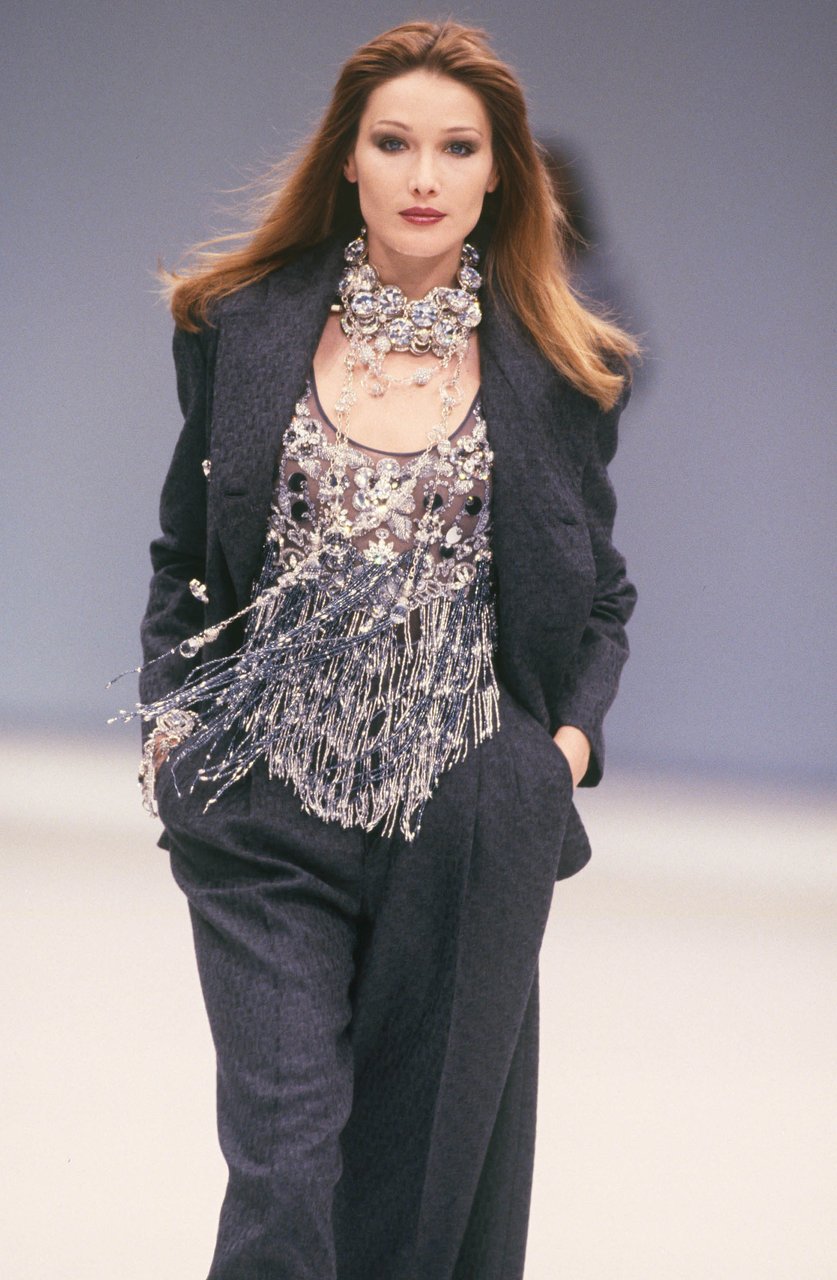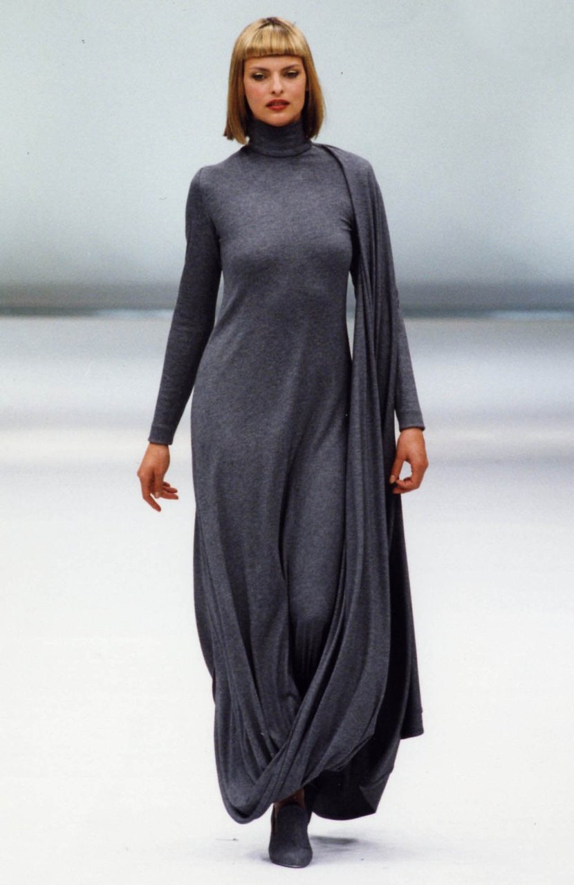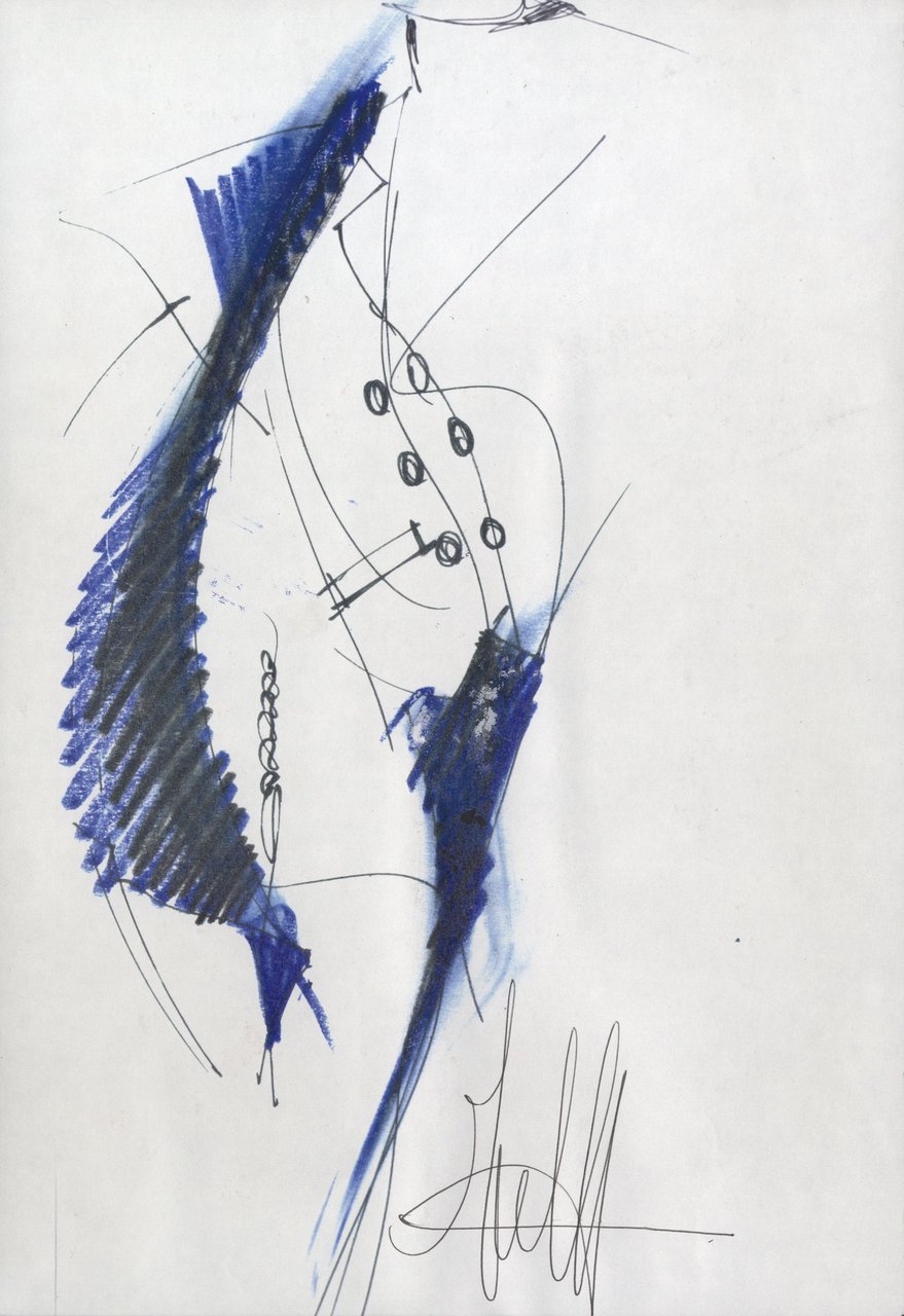 “Una miscela di urbanità e spirito selvaggio. Il senso di libertà che in una cornice civile, mediterranea, donano le materie ‘décontracté’... reminiscenze, qua e là, d'inizio secolo, animate dal piacere di mescolare con audacia cose tradizionali. Alla concretezza, a quel che chiamo elementarità, ho voluto dare le sfumature incantate del sogno, un alone di leggerezza, lieve come un profumo, aleggia la memoria di una silhouette vagamente chapliniana: pantalone largo e corto al malleolo, giacca breve con spalle naturalmente ampie, bianco e nero come ‘Tempi moderni’. E un’energia, un’ironia tutta moderna mescola preziosità e ruvidezze, aggressività e tenerezza”.