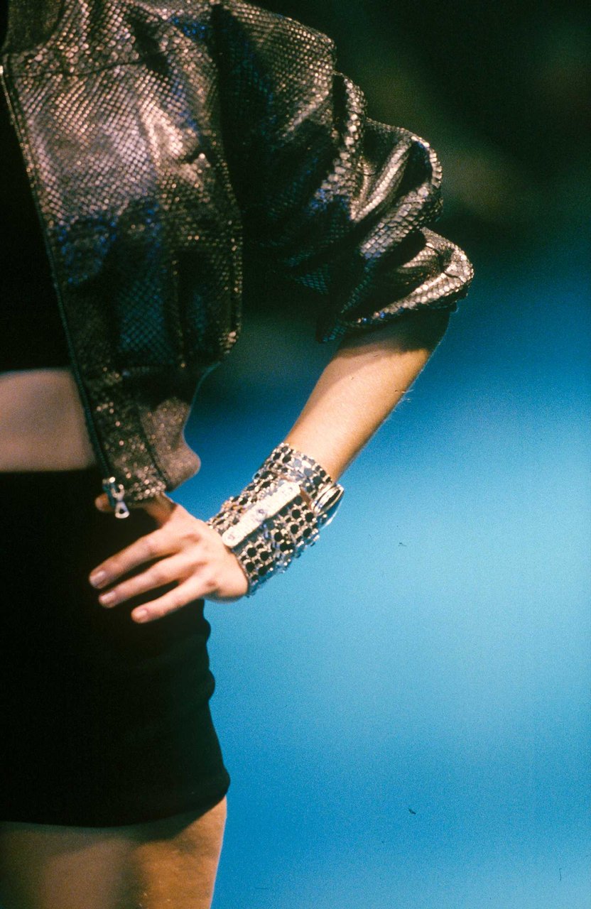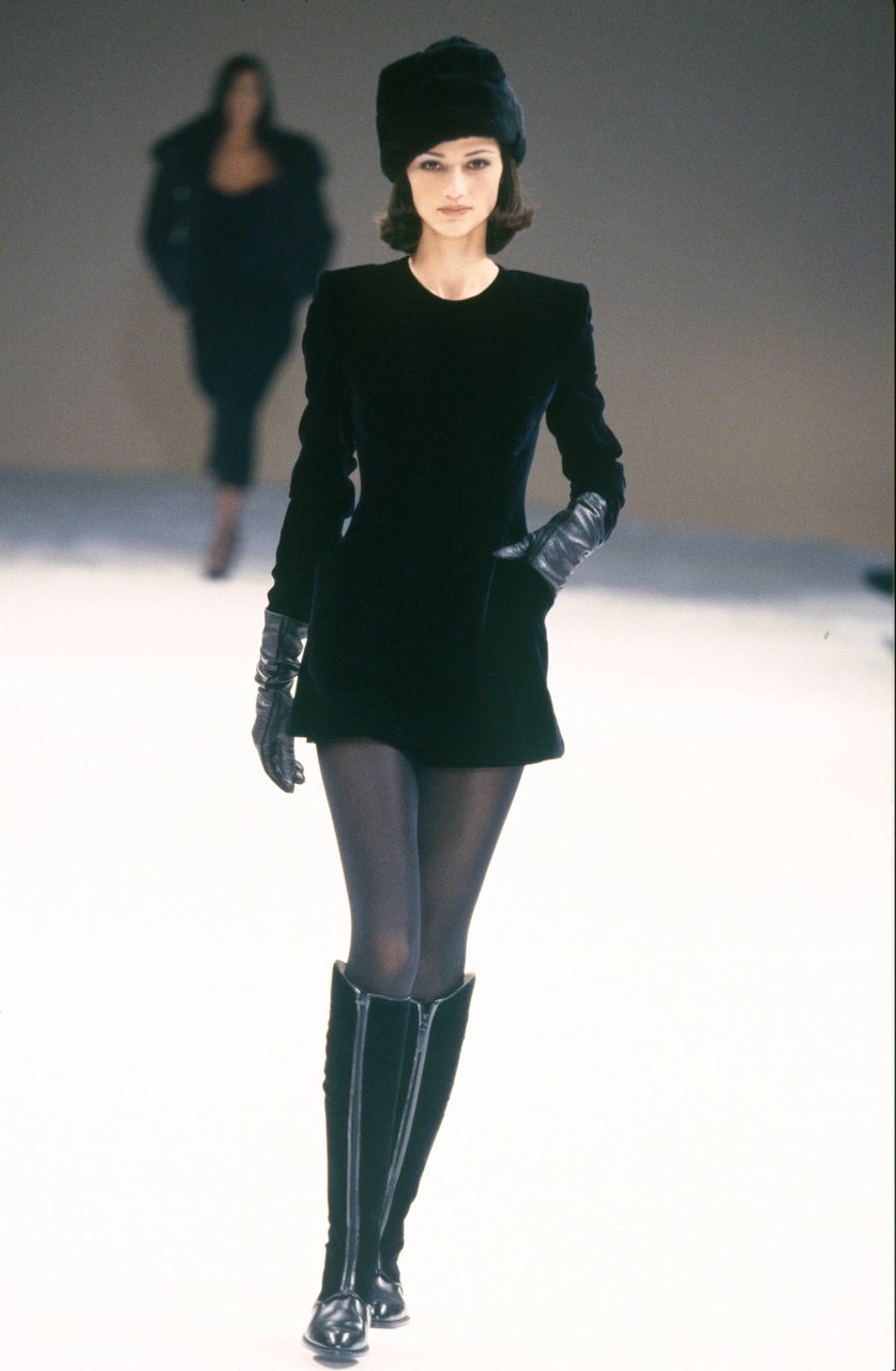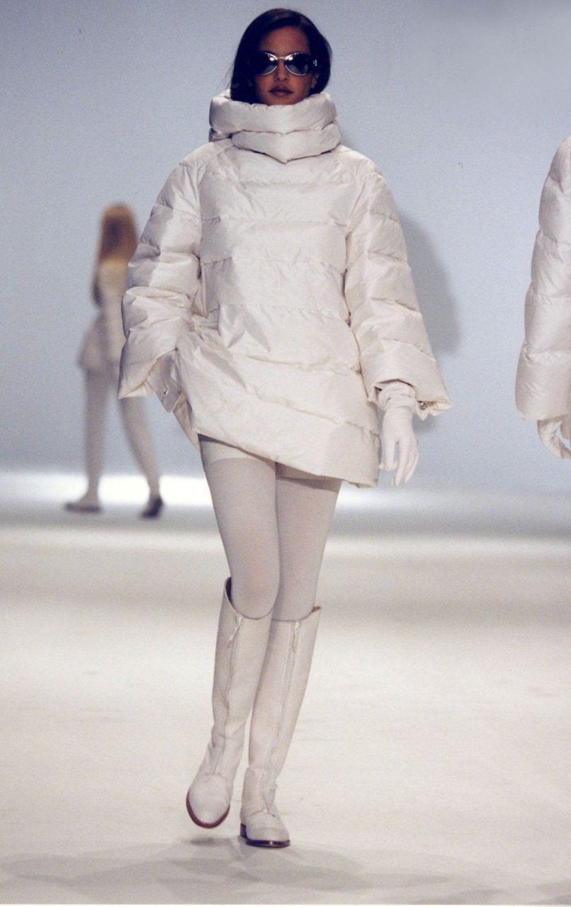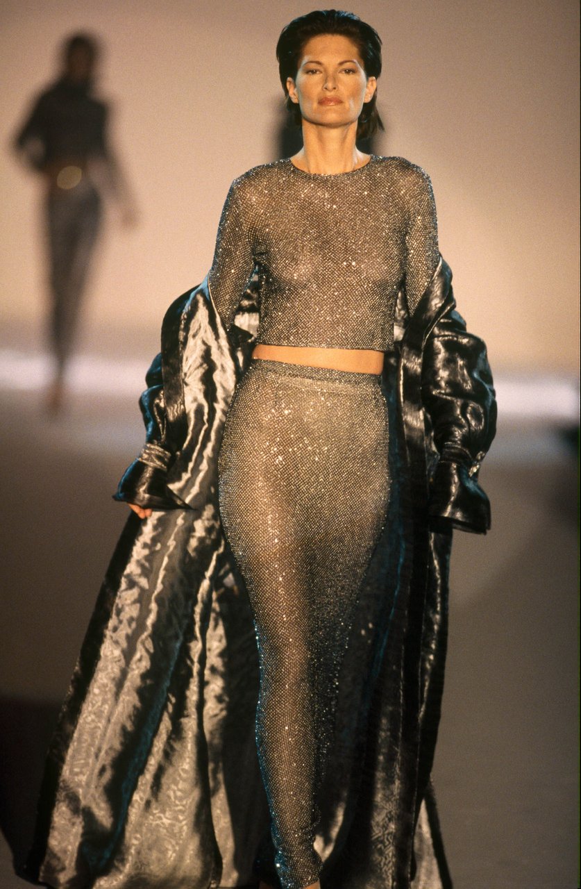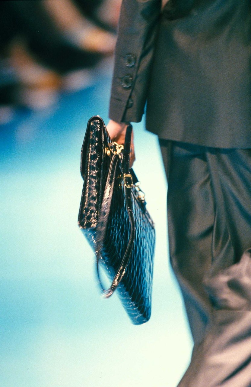 “Se dovessi racchiudere questa collezione in un’immagine, direi che, con intento preciso, mescola sensualità e sentimento alla tecnologia. Voci e forme ultra classiche del guardaroba vivono in libertà, con una scioltezza di trasformazioni e mutamenti che accentua la femminilità e il gusto di essere donna. Tutto nasce canonico, ufficiale, scandito dalle regole, e tutto è diverso, eccitante, sottilmente provocatorio... sorprendono i nuovi classici dalle dimensioni inattese, dilatate all’inverosimile o ridotte e accorciate e i generi si mescolano in una sovversione carica di malizia”.