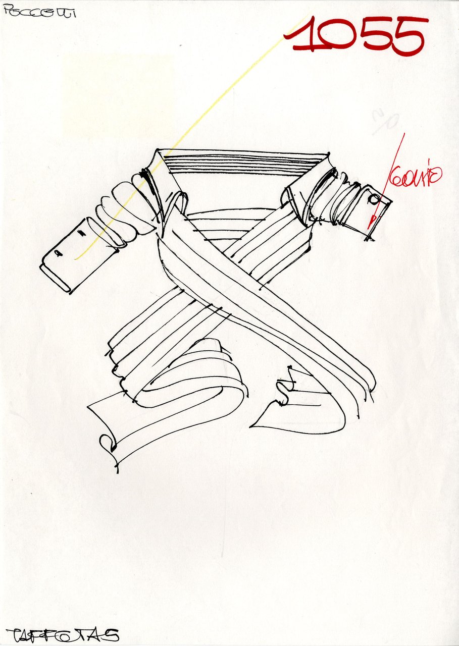 Il formulario della quotidianità. Leggerissime, le camicie bianche di organza, scolpite addosso, hanno la consistenza di un velo. Le maniche, a nervature sottili, accarezzano il braccio. Il colletto piccolissimo è sorretto e sagomato da altre nervature. Scarpe affinate e affilate, anche quando la suola è di para spessa. Cinture sottilissime, strisce che sottolineano appena la figura.