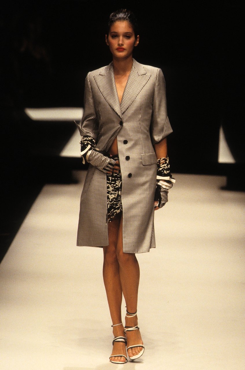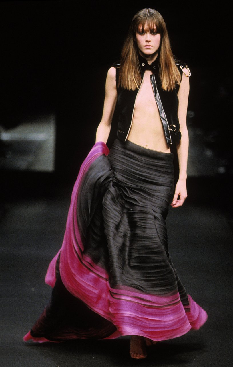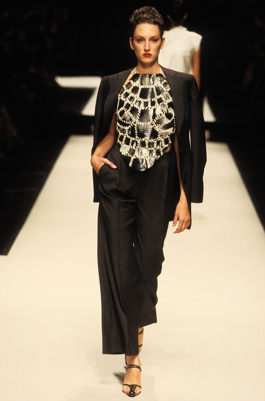 “C’è il senso del classico, ma con il gusto dell’azzardo e di un tempo della vita accelerato. C’è la definizione di una nuova opulenza che non si esprime in ricami preziosi, ma nel contrasto dei materiali arditi e nella sublimazione di quelli tecnologici. C’è la mescolanza voluta tra maschile e iperfemminile, una miscela ribelle e splendente che mi riporta agli anni d’oro del rock: David Bowie, Mick Jagger, Iggy Pop. Alla grande tradizione del vestire inglese, con marsine, dinner jacket, cappotti da postiglione, sconvolta da tessuti lucidi, materiali strani, stoffe contraddittorie... un senso lussuoso di stravaganza affiora anche dove i capi sembrano avere l’origine più tradizionale”.