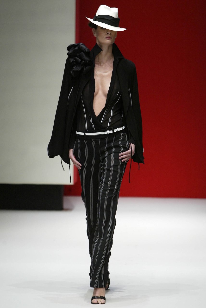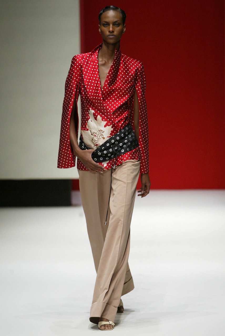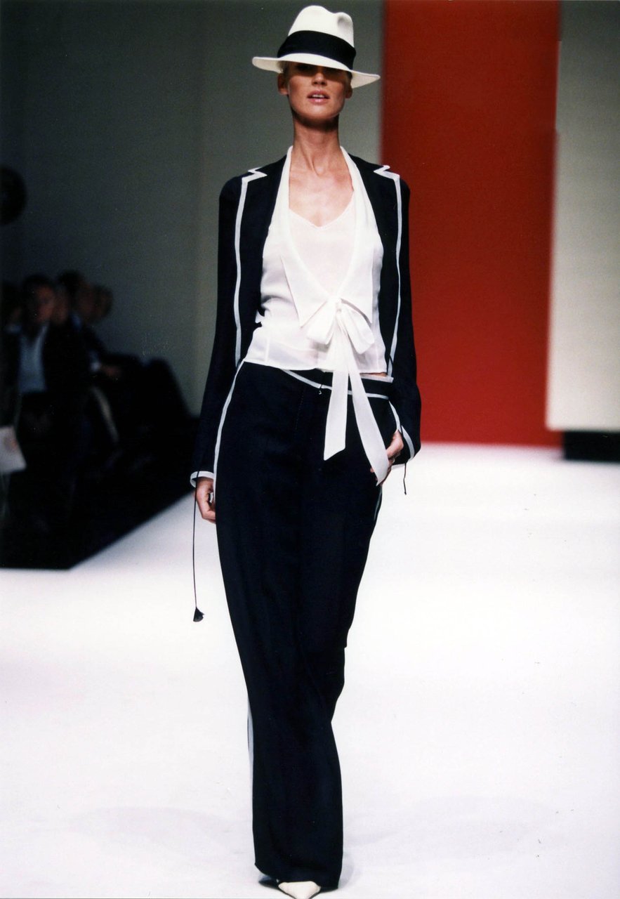 Il risultato di questo stravagante percorso è una trasposizione libera e gioiosa di certi principi di severità e di rigore che fanno pensare proprio all’Oriente. Con una volontà di eleganza, ammorbidita e sinuosa la silhouette, scivolate e fluide le forme. Sono stati privilegiati per questo i tessuti più duttili e sciolti, come la georgette ed il satin. Ma senza rinunciare alla perfezione della struttura, all’importanza dell’aplomb, che individua nella spalla il punto-chiave naturale e consente al capo di cadere con facilità. Anche per i colori ho giocato tra compostezza e slancio, opponendo combinazioni “cool” di bianco e nero a modulazioni vitali di terracotta, giallo, arancio, ai vari blend di marrone che definiscono le differenti qualità di pelle - dal camoscio, alla nappa, al marabù – dall’apparenza un po' invecchiata, consumata, vissuta.