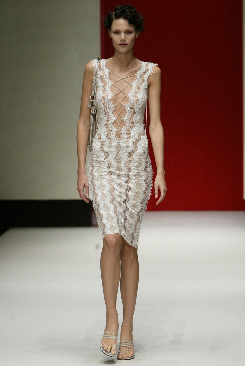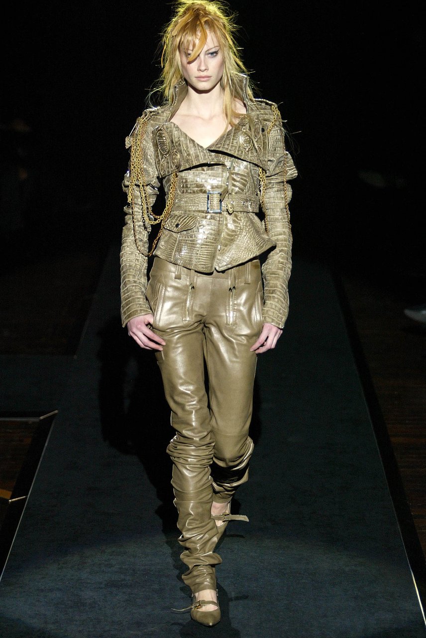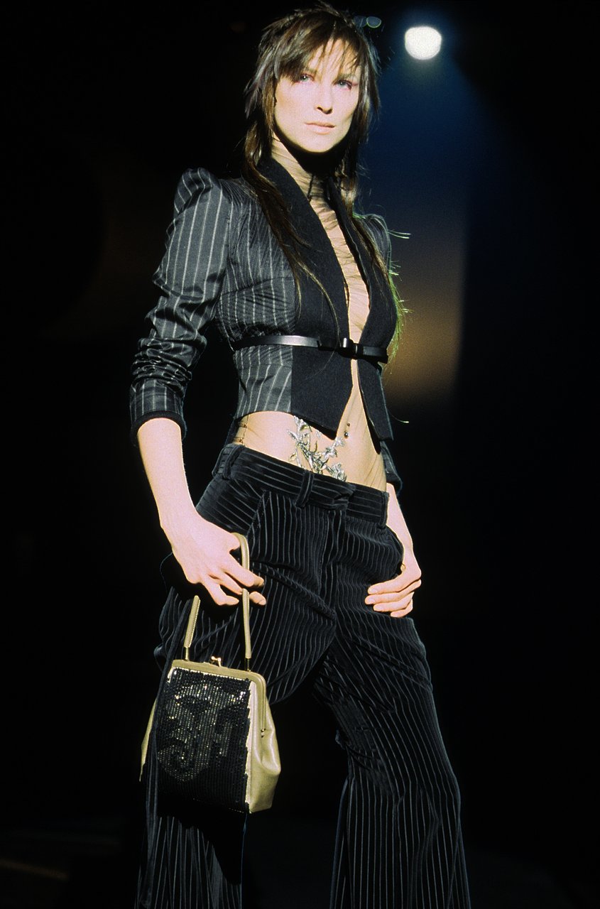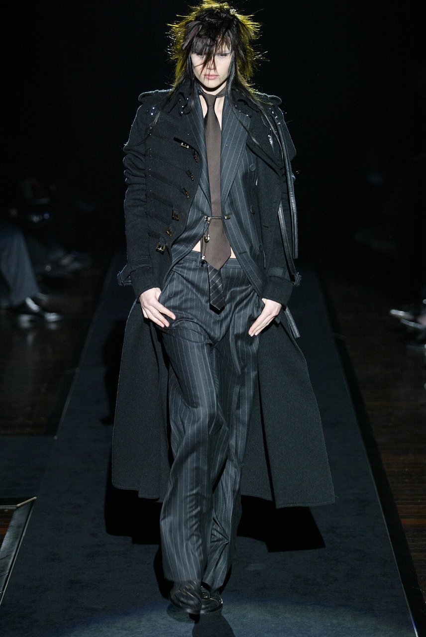 “Armonia degli opposti. Un desiderio di grazia e di fierezza insieme, di semplificazione e di enfasi percorre questa collezione, che si dipana come una storia di magiche fogge. Dimensioni ridotte, linee assottigliate, vita innalzata appena sotto il seno generano un’impressione di scioltezza e fluidità, che dà risalto a volumi intenzionalmente accresciuti. Mi sono lasciato conquistare da un gioco di costruzione e decostruzione delle forme, che è anche un gioco con la storia, con un’epoca che ritengo mirabile, perché ha visto i canoni dell’eleganza cambiare e diventare moderni. Quindi, con un’intenzione assoluta di modernità, ho esplorato certi segni estetici del Direttorio e del primo Napoleone”.