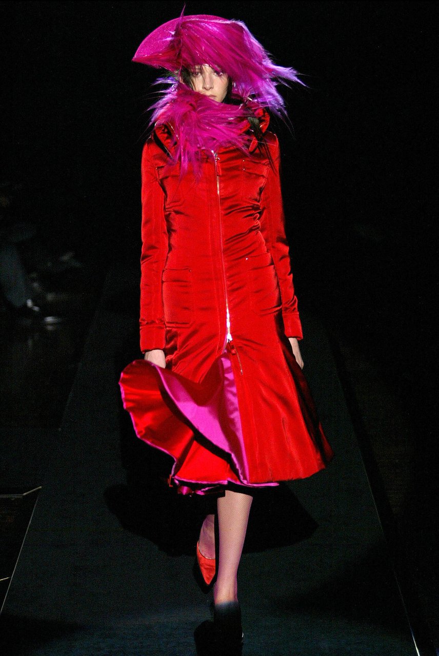 Manipolando le suggestioni della storia, viene ridefinita l’architettura dell’abito, sono sperimentate assonanze nuove tra i pezzi del guardaroba, ricercate alchimie singolari di materie. La pulizia fondamentale delle linee si completa in una sequenza di ampiezze, rotondità, gonfiori calibrati, prodotti da tagli singolari, coulisse, lacci, drappeggi. Allo stesso modo, l’equilibrio tra compostezza e slancio segna l’identità cromatica della collezione, pacata e variata. Accanto ai non-colori dell’inverno, solidi e naturali – il grigio urbano, il verde militare e oliva, il kaki – il bianco tenero ed il rosa poudre dell’incarnato delle “merveilleuses”, il nero severo e prezioso, il rosso imperiale, il fucsia della Martinica che forse Joséphine portò con sé a Parigi, nei suoi ricordi e nel suo cuore.