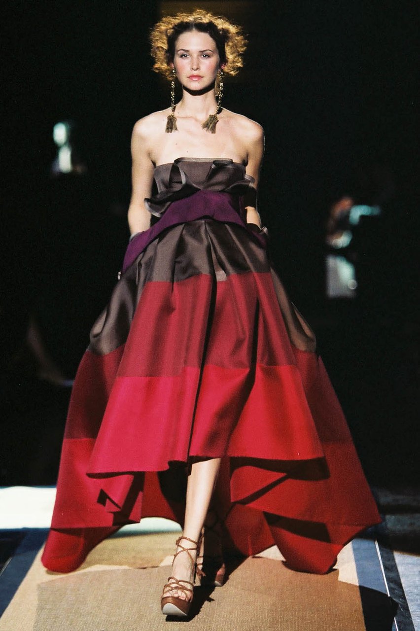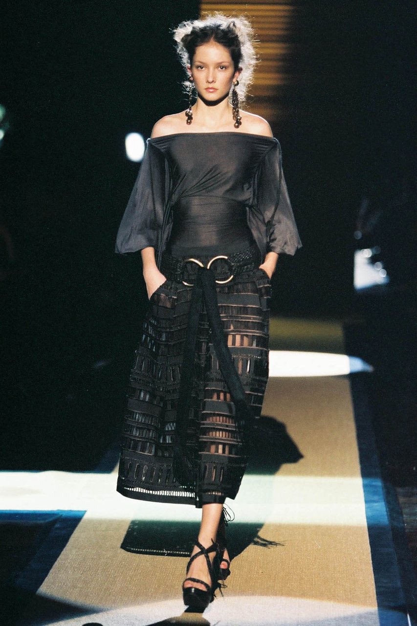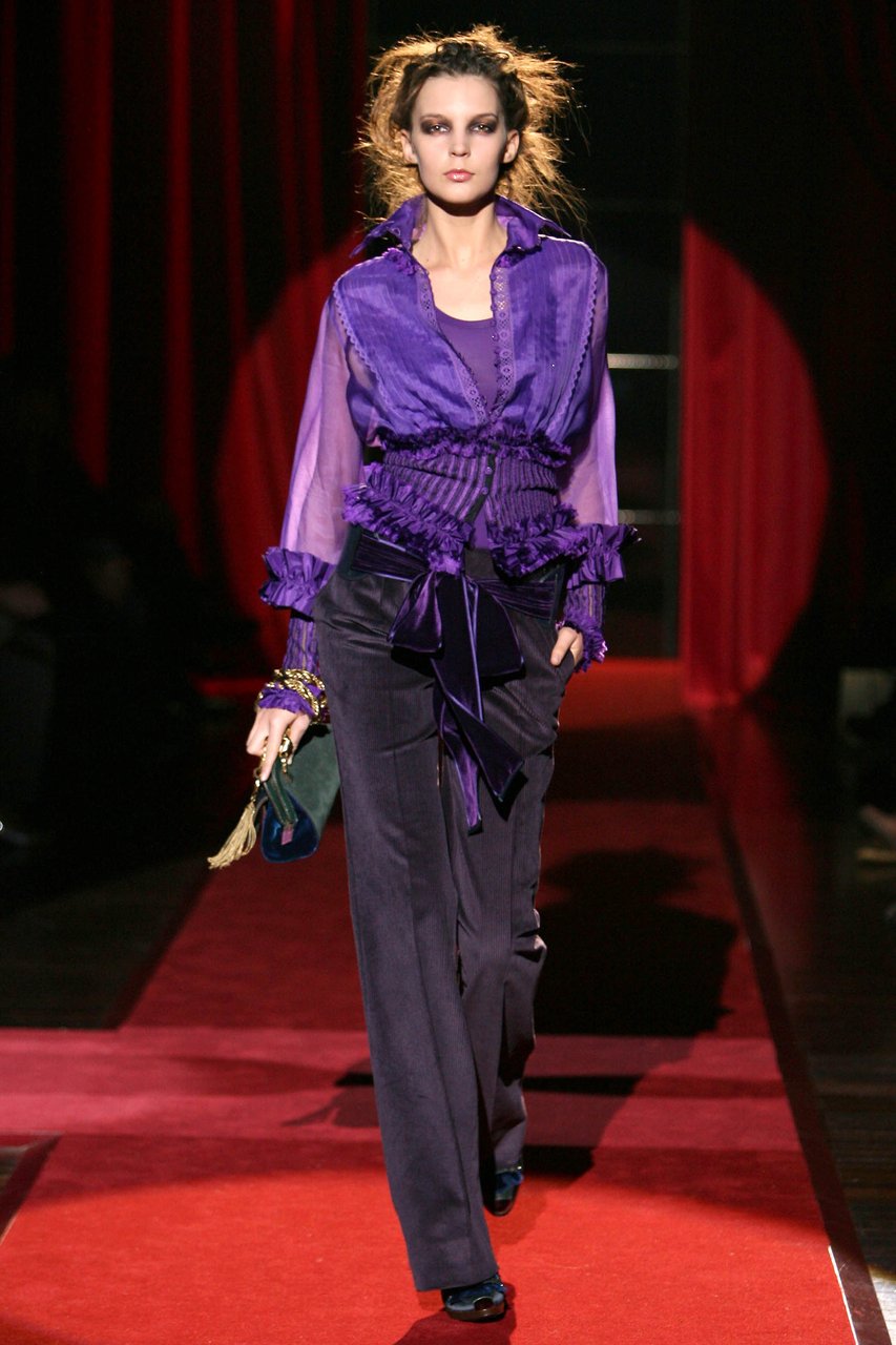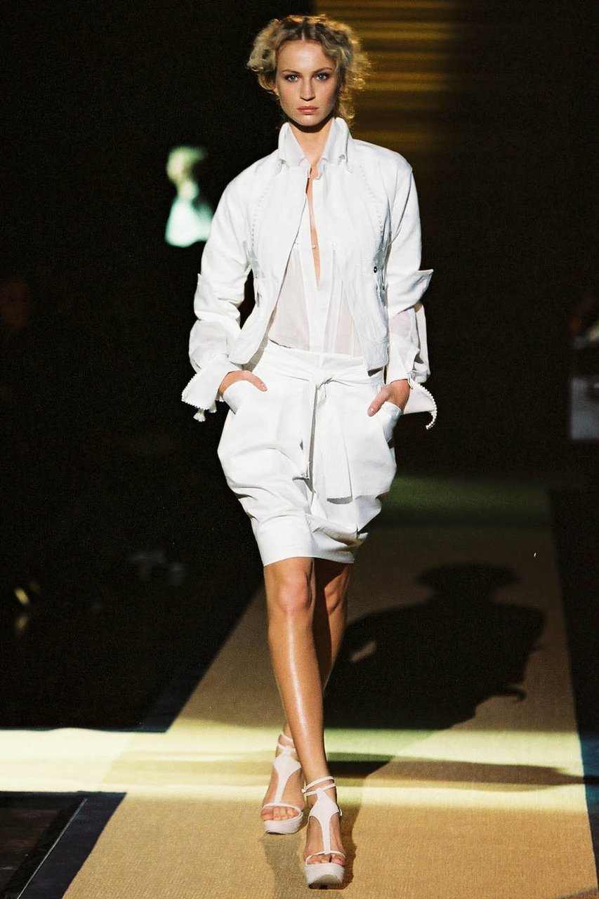“Riflettendo sui corsi e i ricorsi che governano la storia, mi ha colpito come ogni principio di secolo porti con sé un impulso singolare a ridefinire e, per così dire, a ripulire linee e fogge del vestire. Sviluppando questa intenzione, che in verità è un elemento costitutivo del mio progetto di stile, in questa collezione ho voluto porre un accento ancora più marcato sulla precisione e sulla purezza quasi geometrica delle forme e delle costruzioni. Perseguendo un ideale di perfezione e di distinzione che giunge a suggerire persino impressioni di regalità, severa ed aggraziata insieme, vibrante di contemporaneità”.