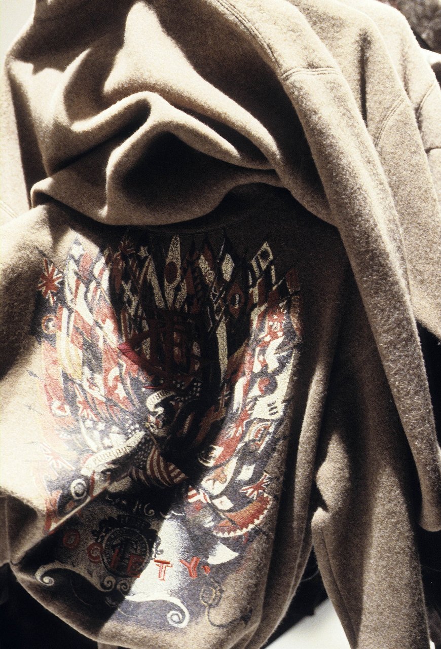 Ginnico. Comfort e mancanza di ostentazione, quasi un vago gusto per tutto ciò che è vissuto, recuperato, in un certo senso – tutto interiore e intellettuale – già appartenuto. Cachemire e lambswool uniti a mano, tricot di cotone a patchwork di punti. Argentine in organdis di cotone leggero. Oxford declinato dalla camicia alla giacca ai bermuda. Giacche a vento di lambswool accoppiato al bemberg. Camoscio peso piuma spalmato di gomma, pekary naturale, giuntato con cuciture piatte.
