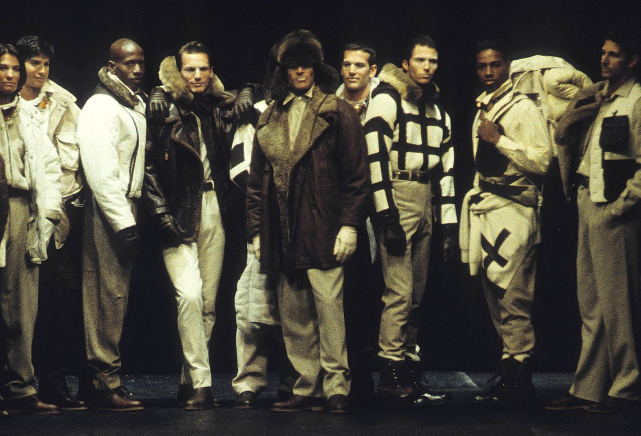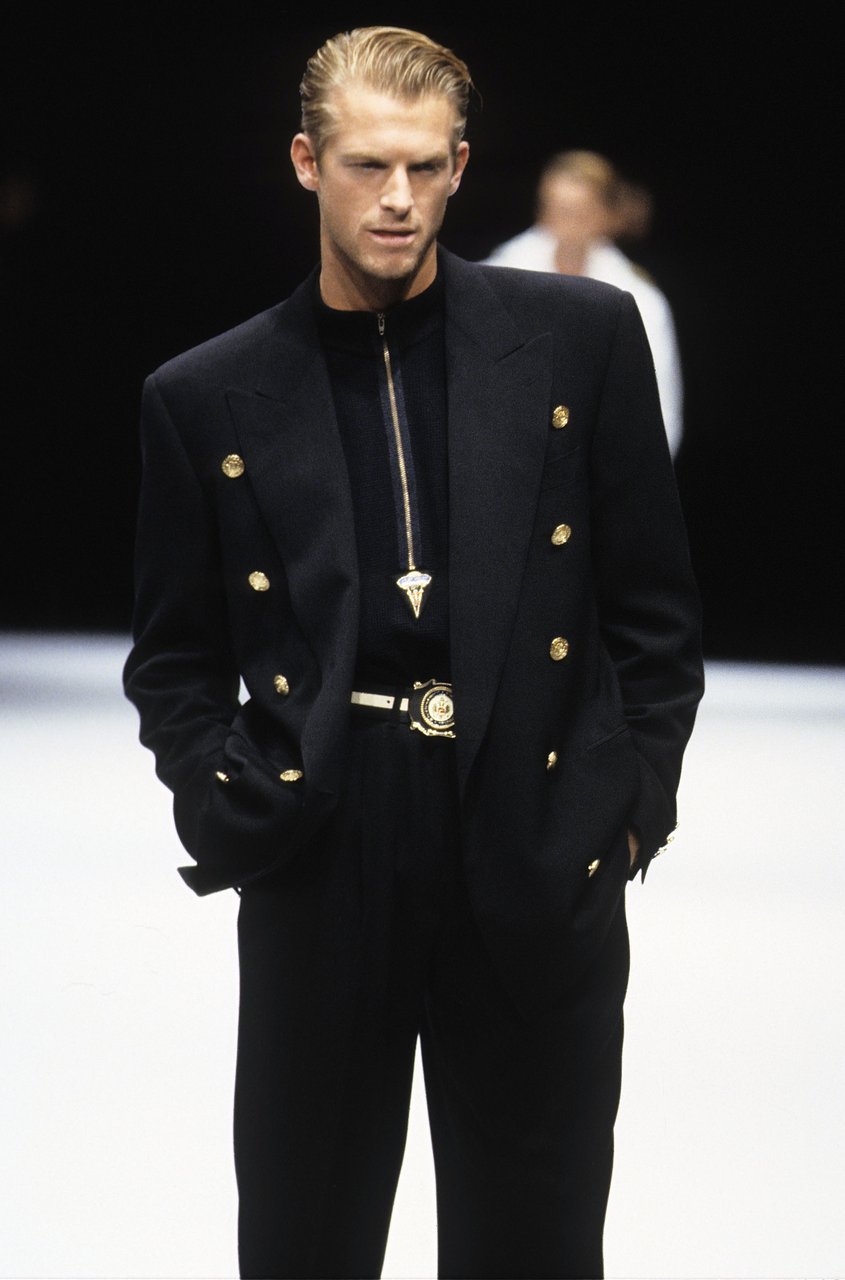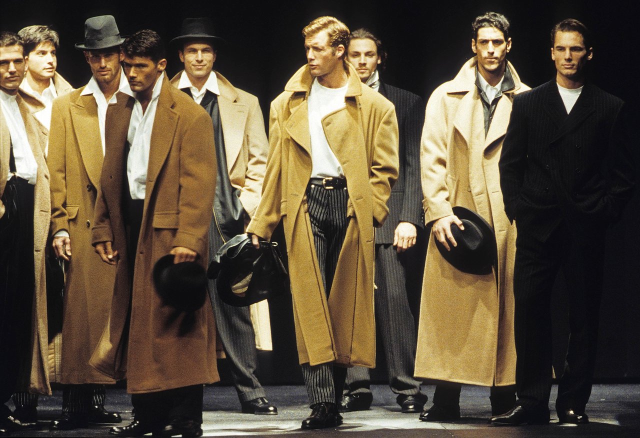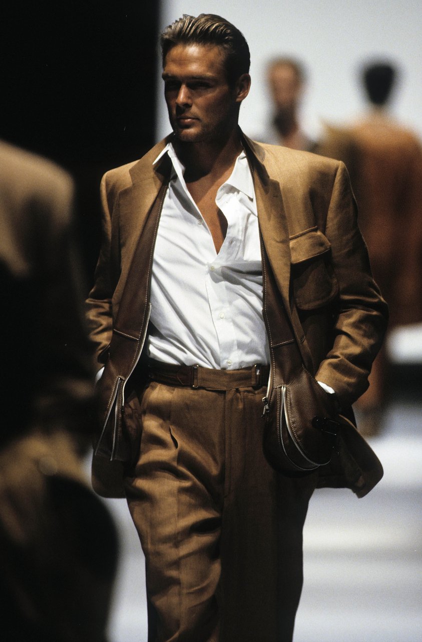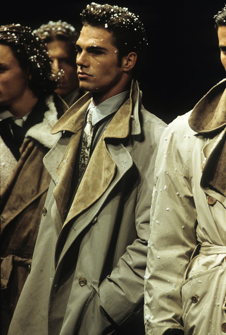 “Il culto del dettaglio, l’educazione alla materia, la costruzione canonica del guardaroba maschile che ho messo a punto nelle mie collezioni uomo, hanno preparato la vitalità di oggi, che mette l’accento sul muoversi e sulla duttilità degli abiti. I temi dello sport riaffiorano lungo la collezione come realtà della linea e della forma, giochi cromatici che la libertà di oggi permette di affrontare e mescolare in perfetta autonomia. La silhouette allungata, con spalle ridotte, ha quel tanto di elastico che serve per il comfort, e di morbido che avvolge come un guanto, rispettando la struttura atletica del corpo”.