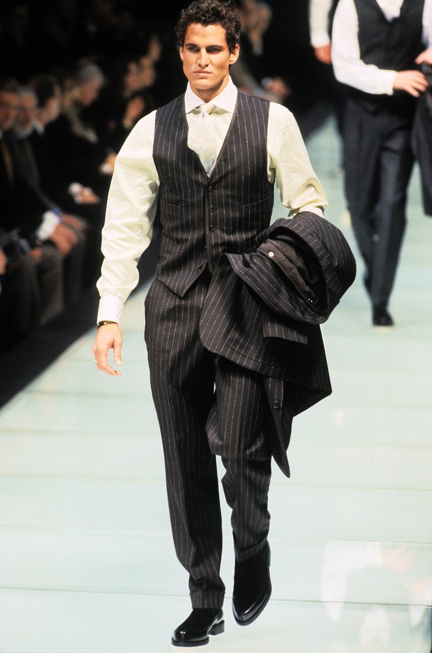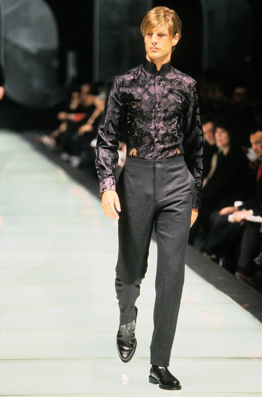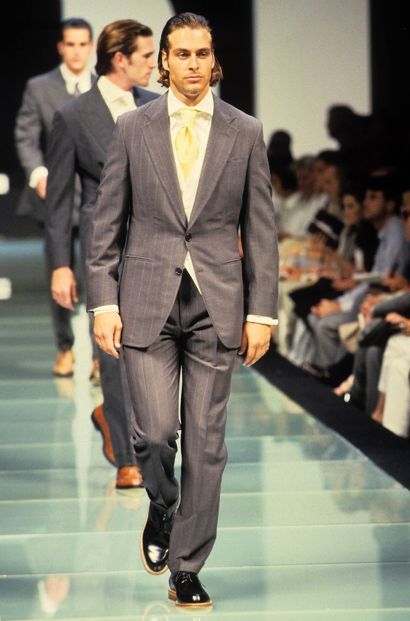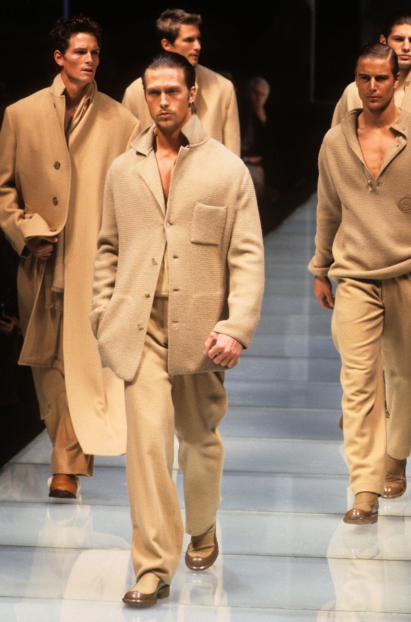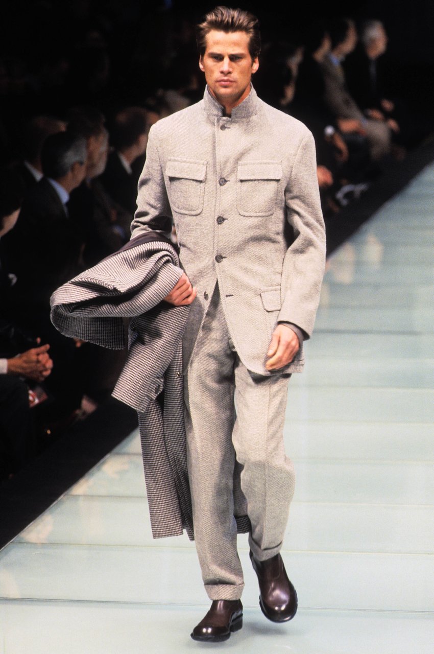 Comfort: ogni capo è volutamente, deliberatamente confortevole, anche quando ha forme molto aderenti, ottenute grazie a moderne modellazioni di origine sartoriale. Logica: negli intendimenti. I colori appartengono all’origine ed alla tradizione del capo e della materia. Qualità: sublimata dalla foggia. Alpaca corposa che può essere usata senza intelaiature; flanelle doppie come panni; lane e cotoni incollati, doppiati e garzati sino a divenire un unico nuovo tessuto per cappotti morbidi e caldi. Effetti: flanelle, grisaglie, millerighe hanno una mano morbida e vellutata, quasi setosa. Simil-broccati per camicie, realizzati sovrapponendo ricami elettronici. Aspetto consistente, soffice, caldo: tutto sembra pesante, ma nasconde un’anima leggera. Libertà: lo stile non deve essere formale per esprimere eleganza, né informale per sdrammatizzare. Il giorno si trova a suo agio nella sera. Cambiano solo gli atteggiamenti, il modo di porsi. Silhouette: allungata, nera, blu, grigia con pardessus che toccano terra. Giacche lunghe, accostate, indossate con attitudine quasi da uniforme militare.