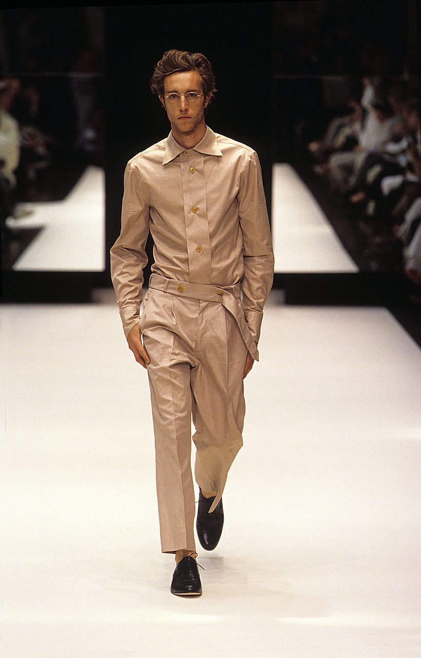In questo nuovo progetto di pacatezza e misura si esprime al massimo grado un’immutata logica di eccellenza che trova il suo lessico più evidente nella qualità assoluta delle materie. A partire da lino e seta, di mano corposa, sfruttando la trama grossa e in rilievo, per accrescere la scioltezza e la fluidità dei capi. Mentre per la lana varianti prossime all’assenza di gravità per trasformarla in un autentico tessuto da estate. E per la pelle, versioni particolarmente duttili e prestanti.