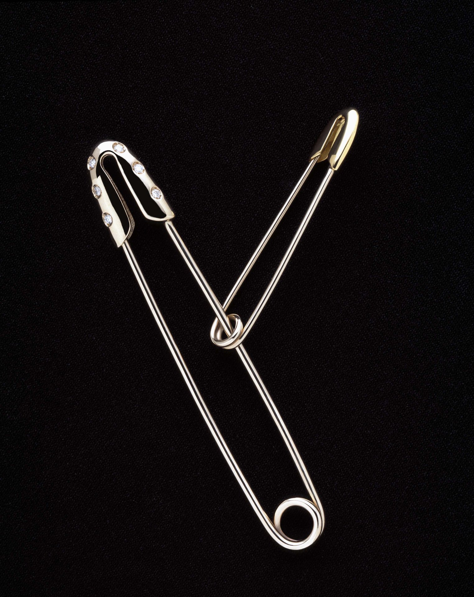 Circa venti pezzi costituiscono la nuova linea. Sono gioielli al femminile e al maschile: anelli e bracciali, orecchini e spille, collier e catene, fermacravatta e fermasoldi realizzati completamente a mano, nelle due varianti dell’oro 18 carati giallo e bianco, spesso mixate tra loro, impreziosite dai diamanti, talvolta supportate dall’acciaio da oreficeria. Nella collezione il “segno” di Gianfranco Ferré è assolutamente evidente. La tradizionale “safey-pin” che da sempre è il suo fermacravatta, diventa il vero leit motiv estetico.