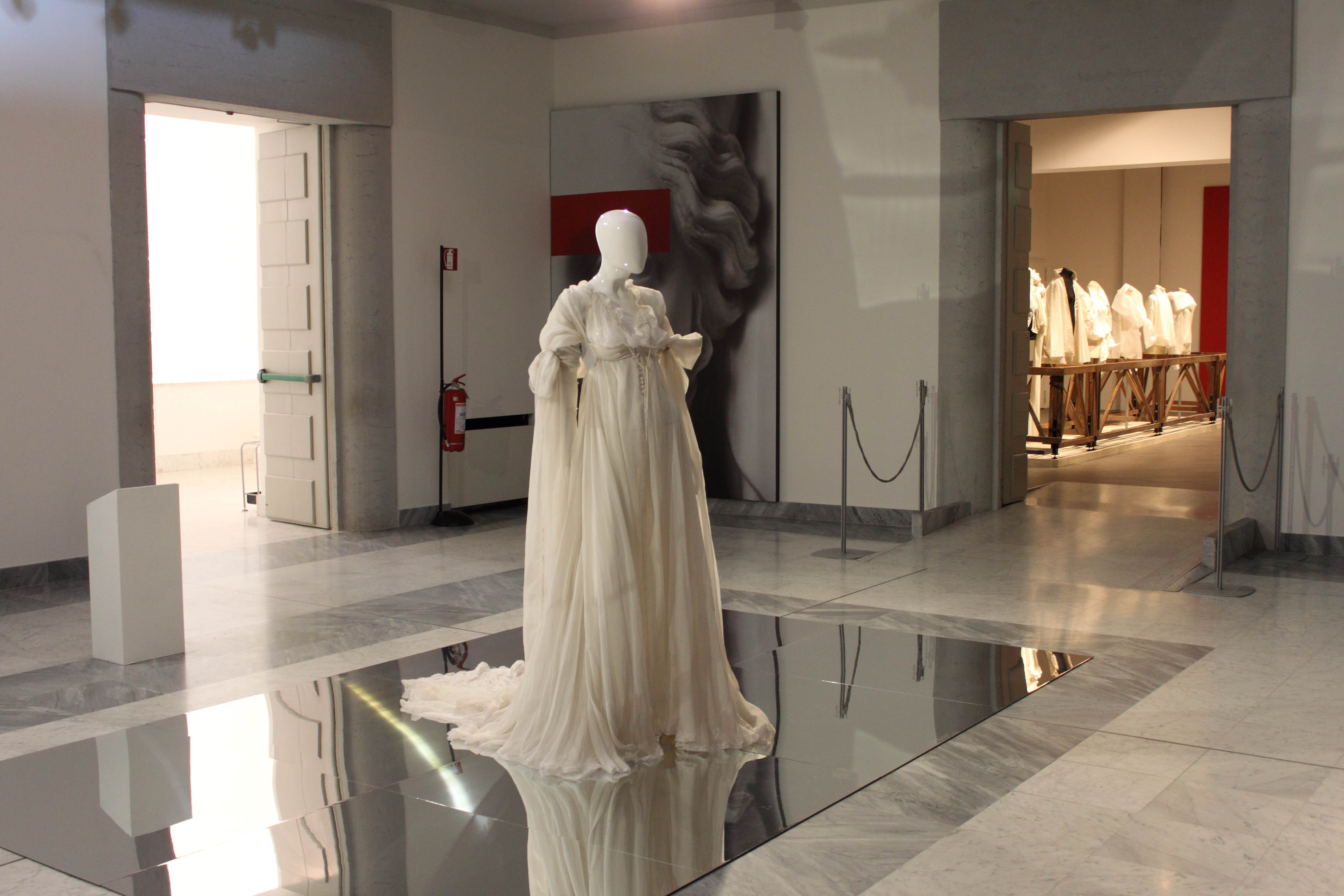 La mostra gioca sui dettagli della storia del costume, reinterpretati in chiave moda dal genio di Ferré. È quanto mettono in luce i sessanta splendidi capi esposti, accompagnati dai bozzetti preparatori. Il percorso, al tempo stesso emozionale e filologico, si articola in ambienti distinti che delineano una vicenda non tanto connotata in termini storico-temporali, quanto costruita attorno ai gusti, alle passioni e alle fascinazioni dell’epoca – e, soprattutto, della sua protagonista, Maria Luigia.