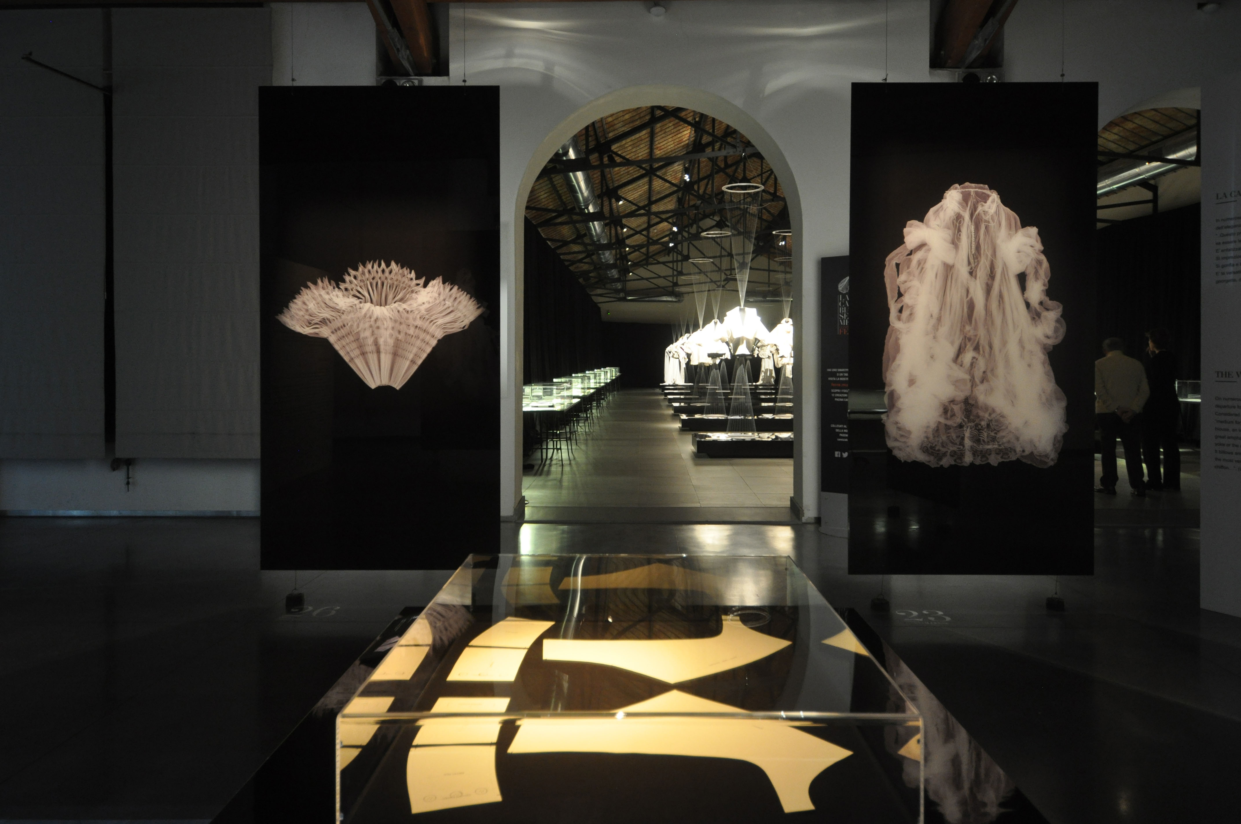 Il cuore della mostra vive nel centro della grande sala successiva, dove le ventisette camicie bianche, piccolo esercito di capolavori sartoriali, testimoniano silenziosamente vent’anni di genialità creativa e progettuale. Esposte rispettando la cronologia della loro nascita, le camicie sono sculture bagnate da luce pensata per consentire al bianco di accendersi in diverse tonalità e alle ombre di fare da contrappunto, per ottenere un suggestivo effetto plastico. Ai lati della grande sala espositiva, sono presenti disegni tecnici, bozzetti per le uscite in sfilata, scatti di grandi maestri della fotografia, immagini pubblicitarie e redazionali provenienti dall’Archivio della Fondazione Ferré.
