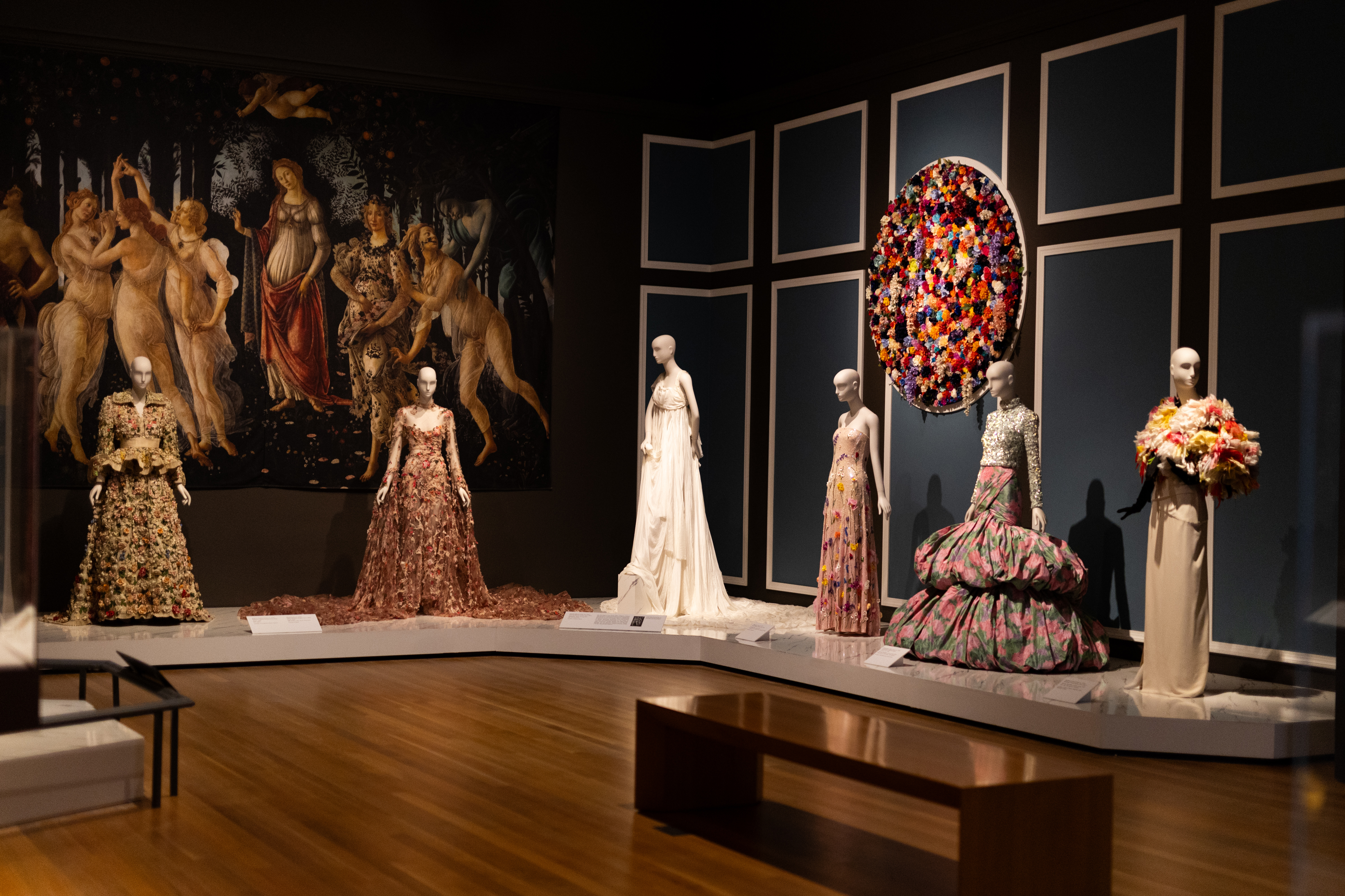Le opere del Rinascimento italiano, del Manierismo e del primo Barocco provenienti dalla celebre collezione del CMA vengono accostate a una selezione di capi di couture, o alta moda, e a creazioni e accessori affini, mostrando come la cultura di quei periodi sia preservata e continui a esercitare un’influenza sui designer e sulle maison italiane del XX e XXI secolo. Parallelamente, opere d’arte della prima età moderna provenienti da diverse aree del mondo vengono riprodotte visivamente attraverso vari media, per illuminare l’ampiezza delle fonti di ispirazione. La mostra presenta circa 80 ensemble e capi di abbigliamento e 40 pezzi di gioielleria. La mostra illustra come la moda, in tutte le sue trasformazioni, costituisca un filo continuo che svela le complessità della storia mentre dà forma alla bellezza contemporanea.
