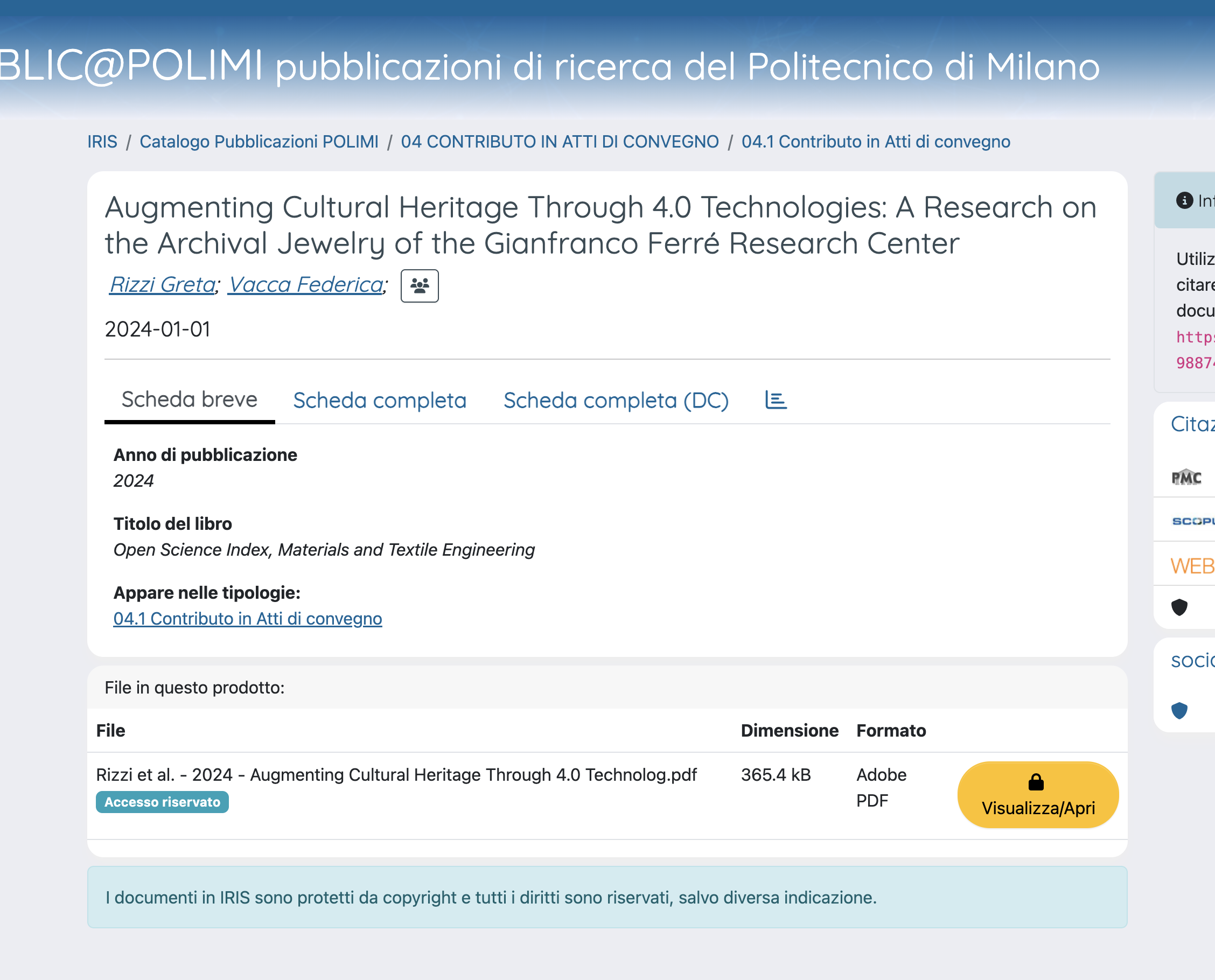 Augmenting Cultural Heritage Through 4.0 Technologies.