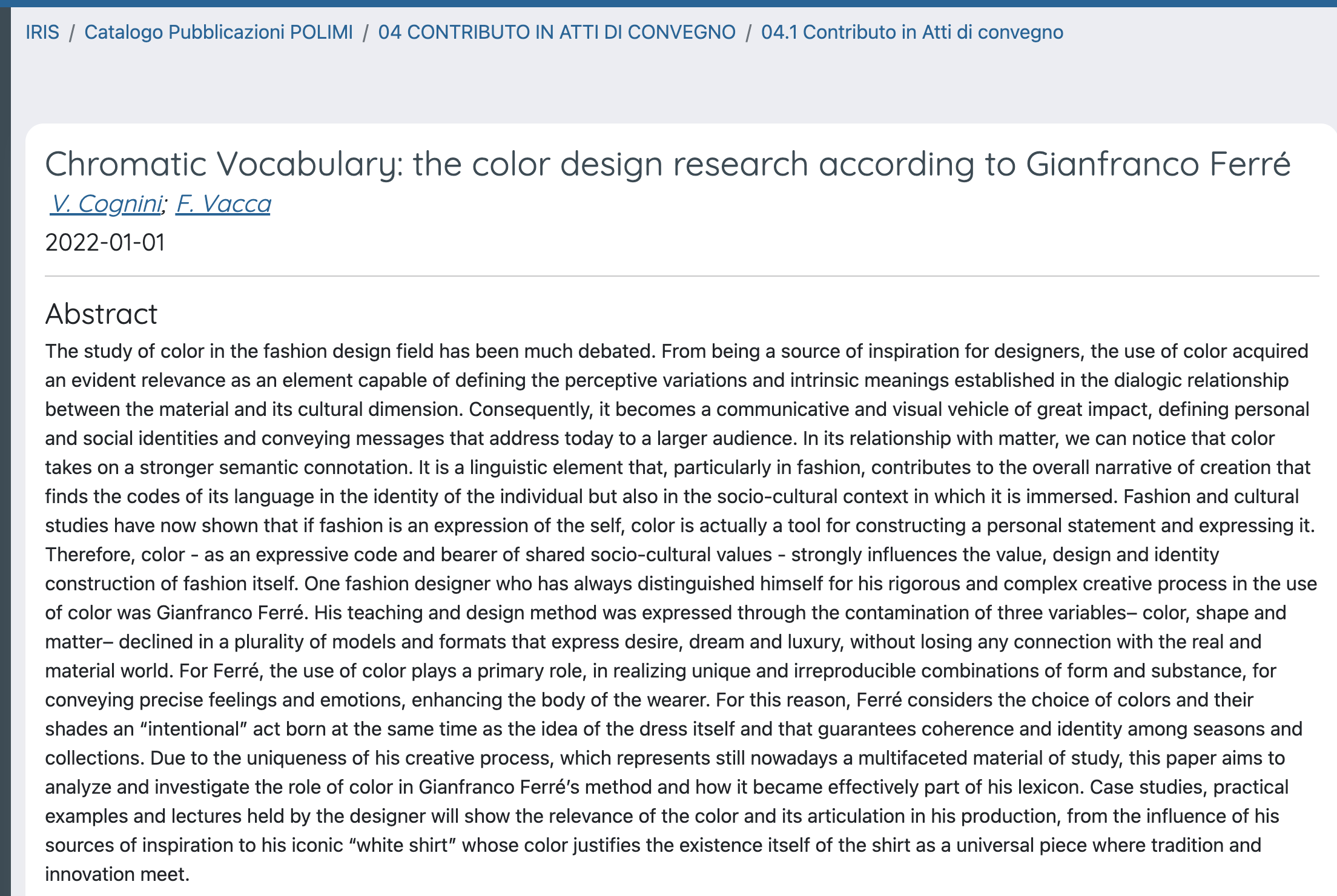 Chromatic Vocabulary: the color design research according to Gianfranco Ferré.